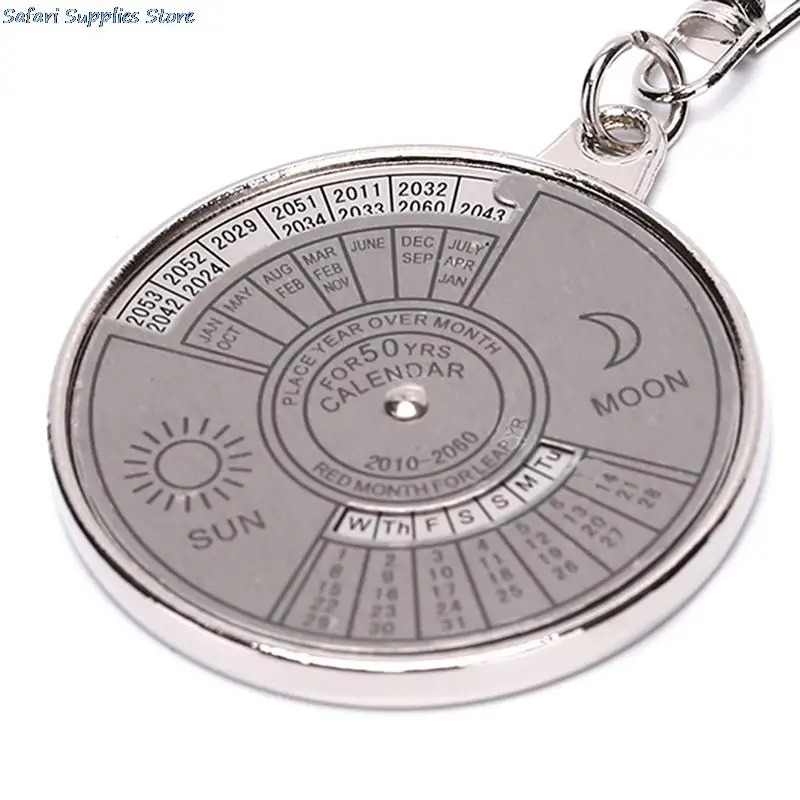 Это кольцо для ключей с компасом и календарем очень креативно разработано и фантастически изготовлено. Нежный вечный календарь, также отличное украшение на ключи с цепочкой. Изготовлен из твердого сплава, может выдерживать длительное использование. Этот компас 50 лет вечный календарь брелок отличный подарок для себя или других.