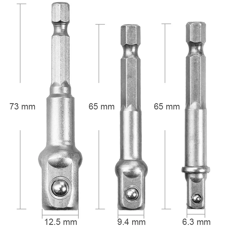 3 шт./компл. 1/4 "3/8" 1/2 "шестигранное сверло с питанием, гнездо для отвертки, гаечный ключ, адаптер, удлинитель для электрической отвертки