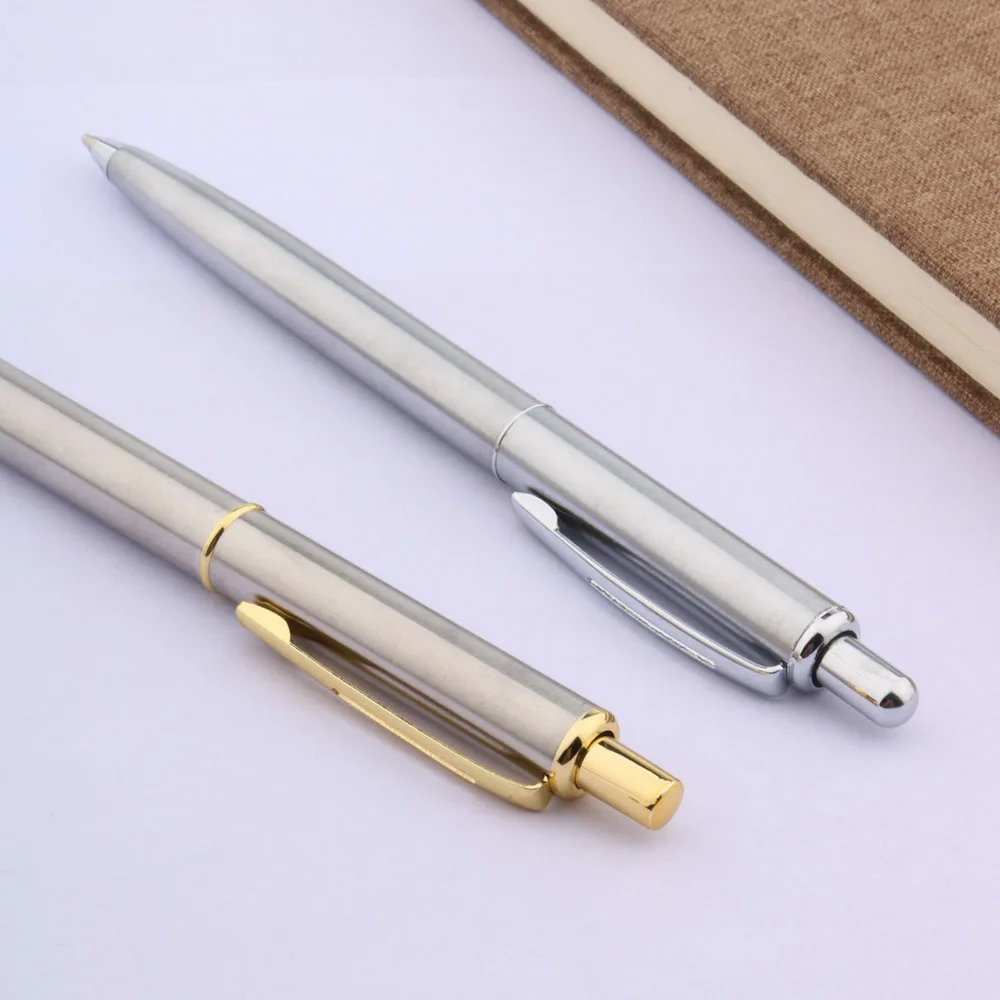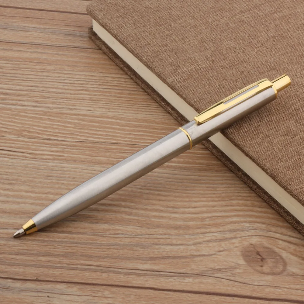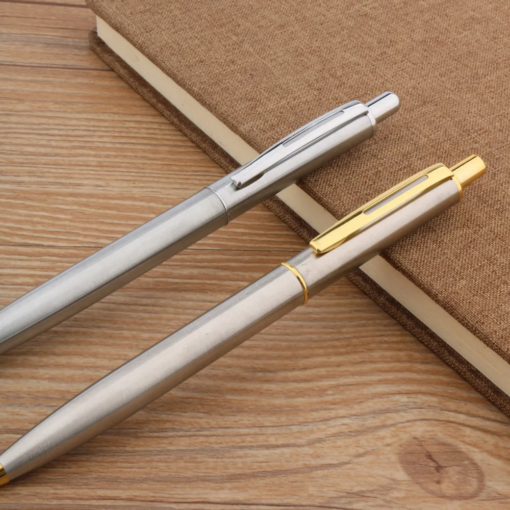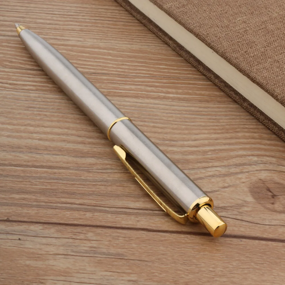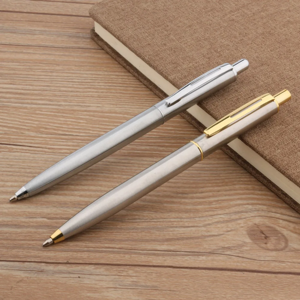 Роскошная металлическая Серебристая офисная пишущая шариковая ручка, Мужская офисная деловая ручка из нержавеющей стали, школьные принадлежности