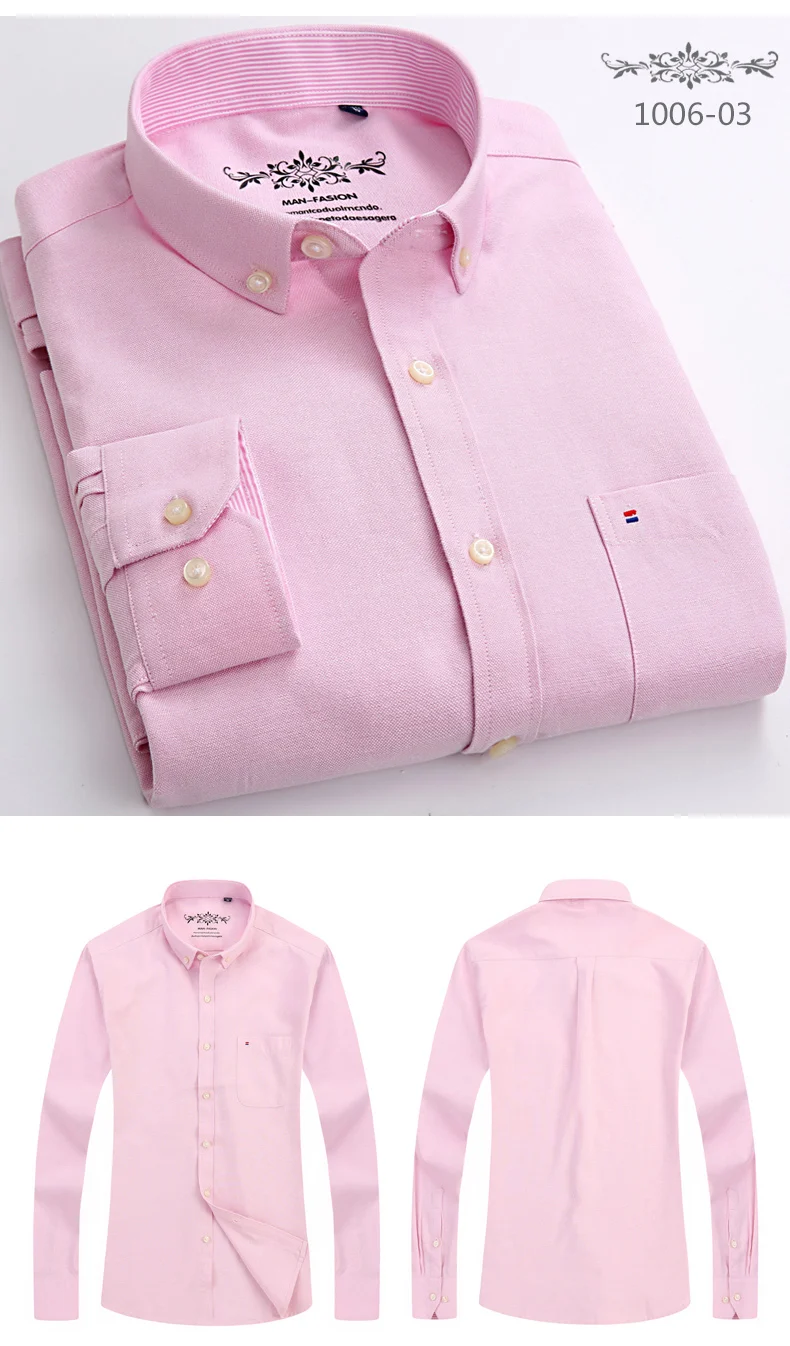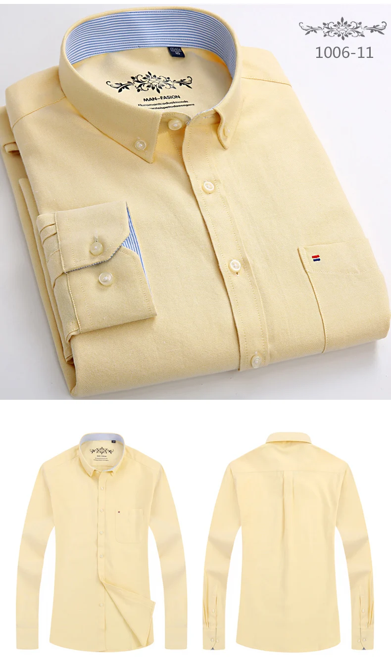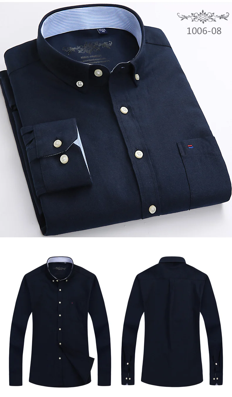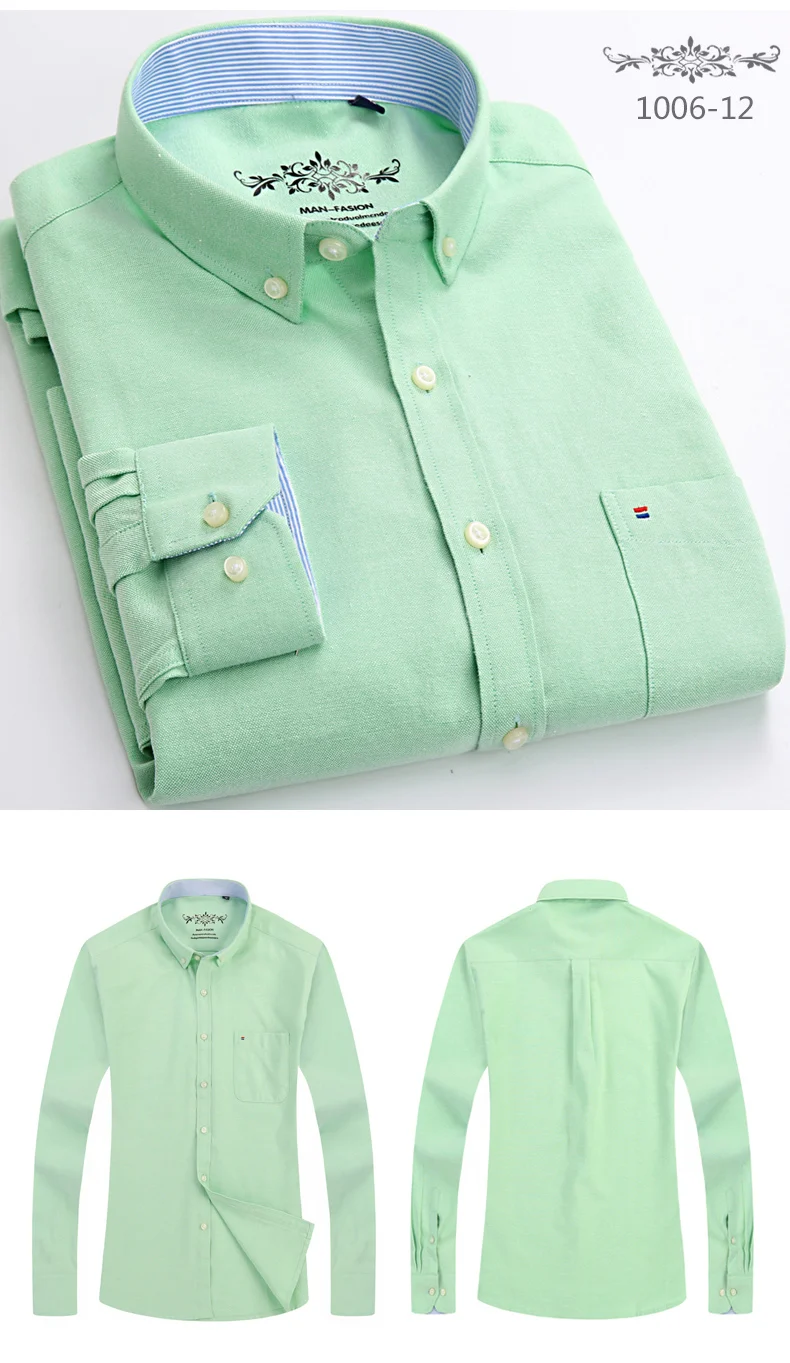 Рубашка мужская повседневная из ткани Оксфорд, однотонная сорочка с воротником на пуговицах и длинными рукавами, удобная Осенняя верхняя одежда, крой Regular Fit, легкая в уходе