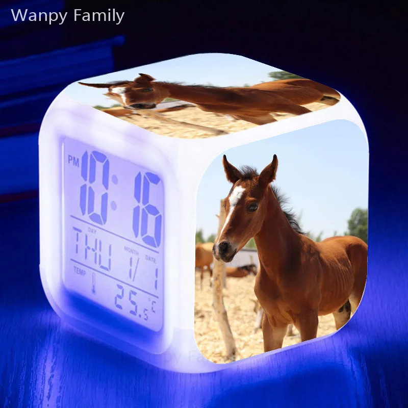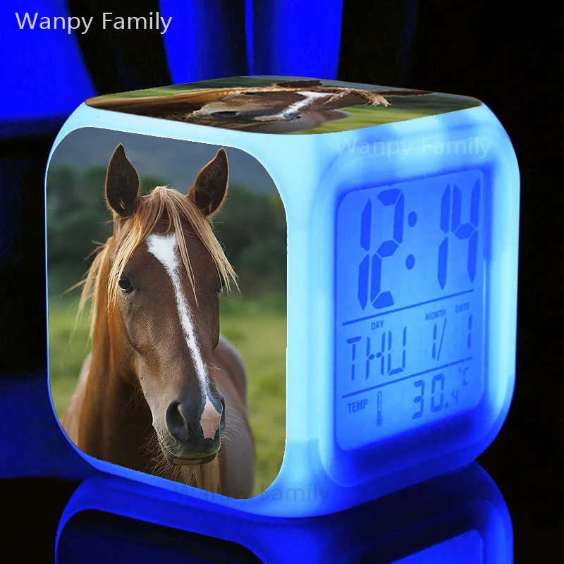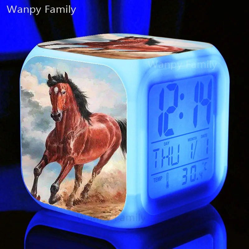 Будильник с изображением лошади, 7 цветов, светящиеся светодиодные ...