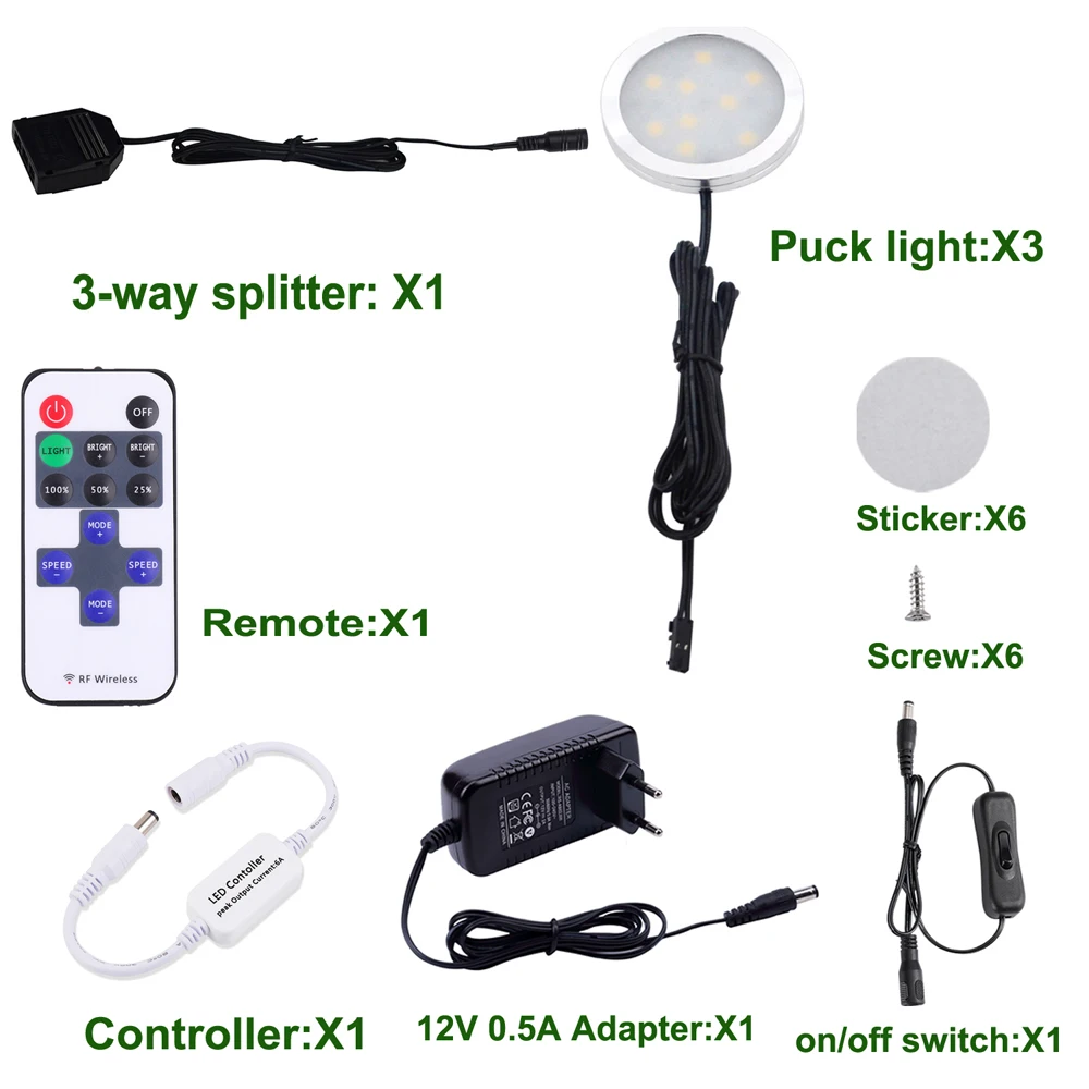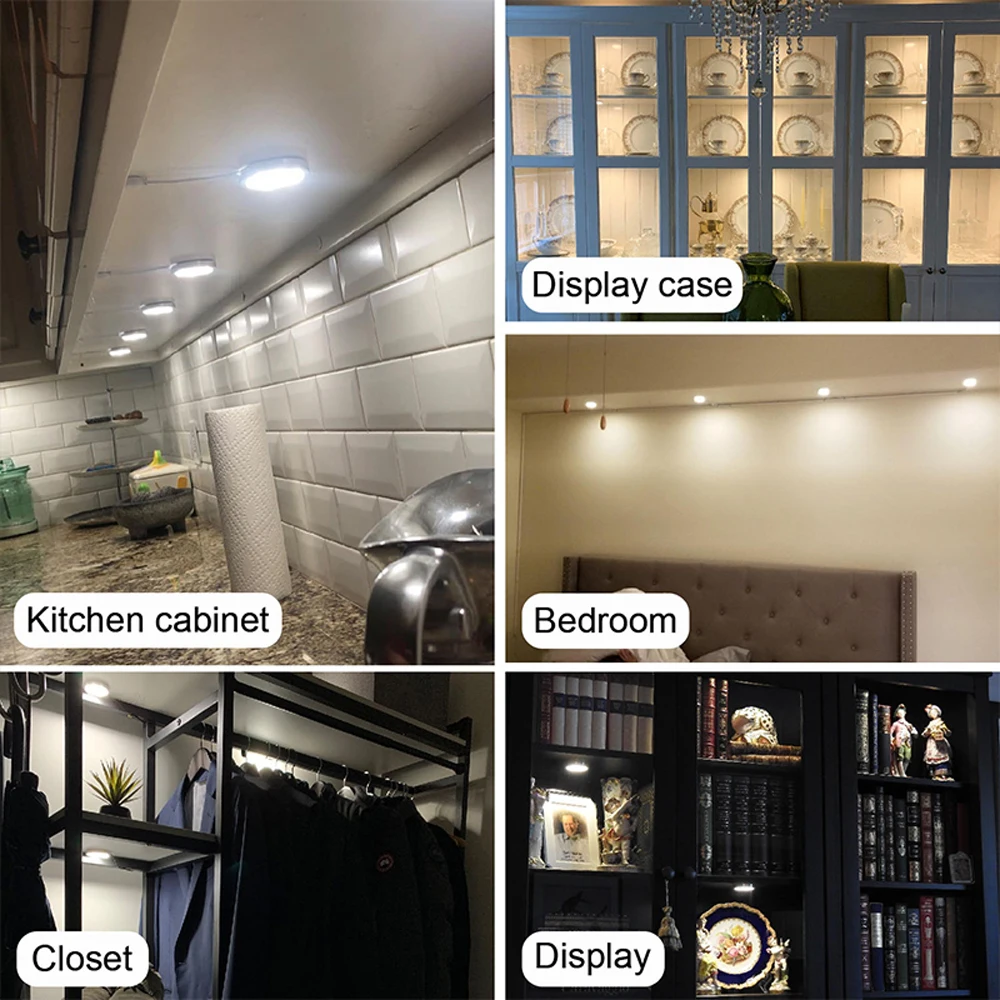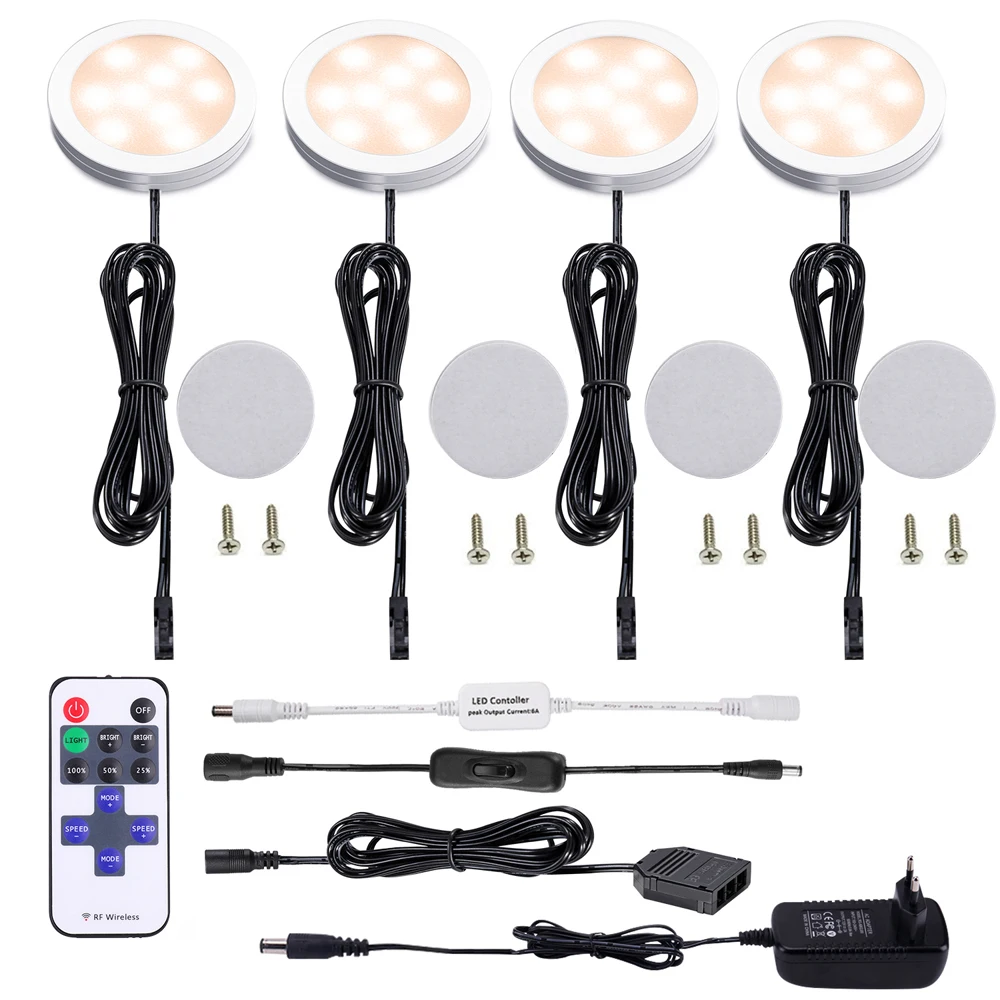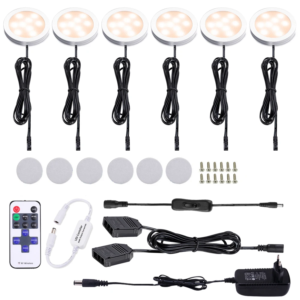 4/6 шт. Светодиодная лампа под шкафом с 10 уровнями яркости, беспроводным управлением RF и адаптером питания переменного тока (европейский стандарт) в комплекте.
