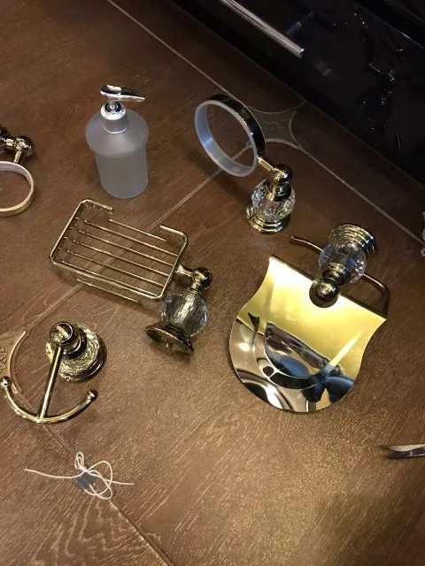 Роскошный набор аксессуаров для ванной комнаты золотого цвета, полированная Латунь, набор фурнитуры для ванной, настенные Товары для ванной, banheiro