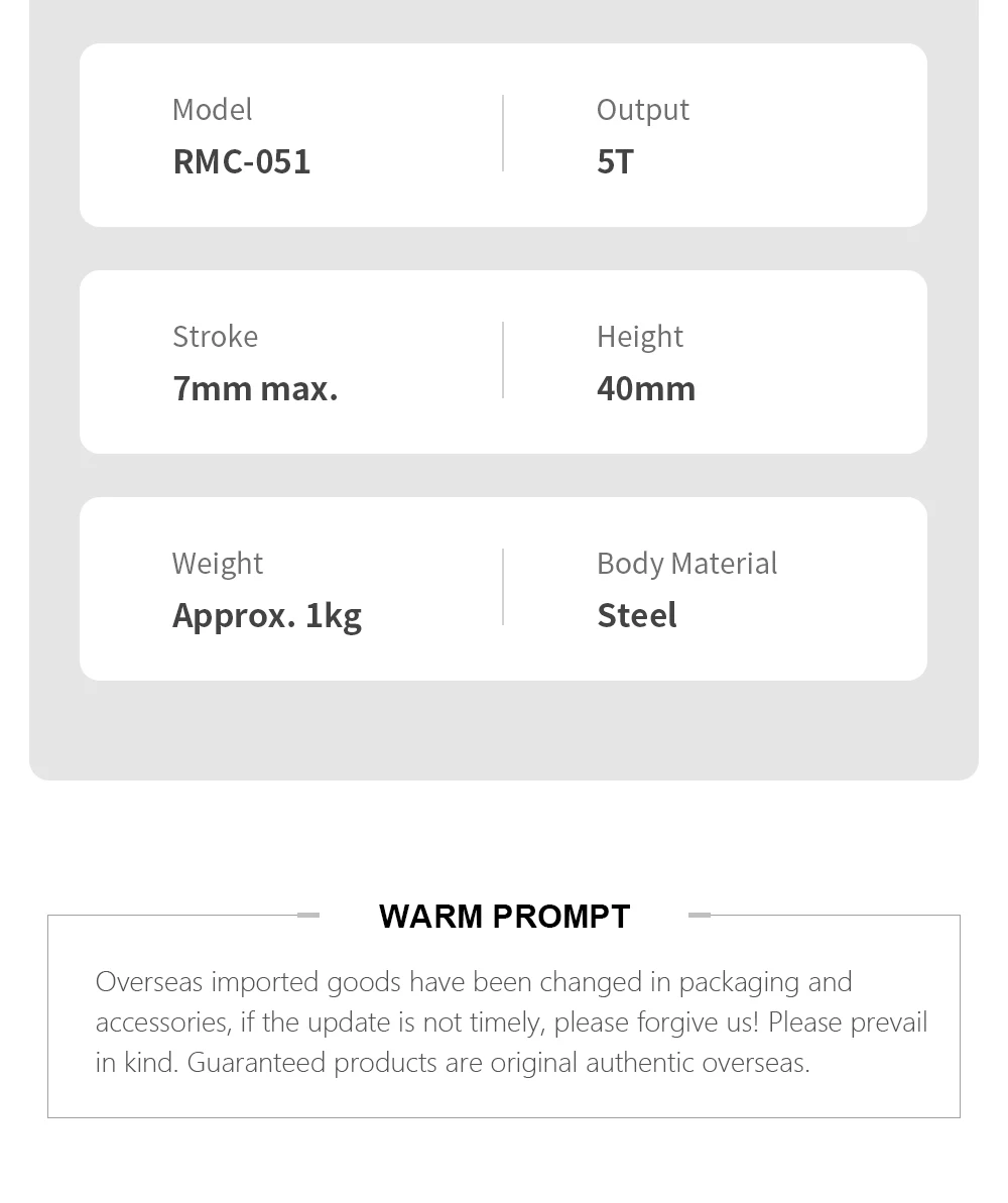Российский склад, тонкий гидравлический цилиндр RMC-5, гидравлический подъемный домкрат, ход 7 мм, выход 5 тонн