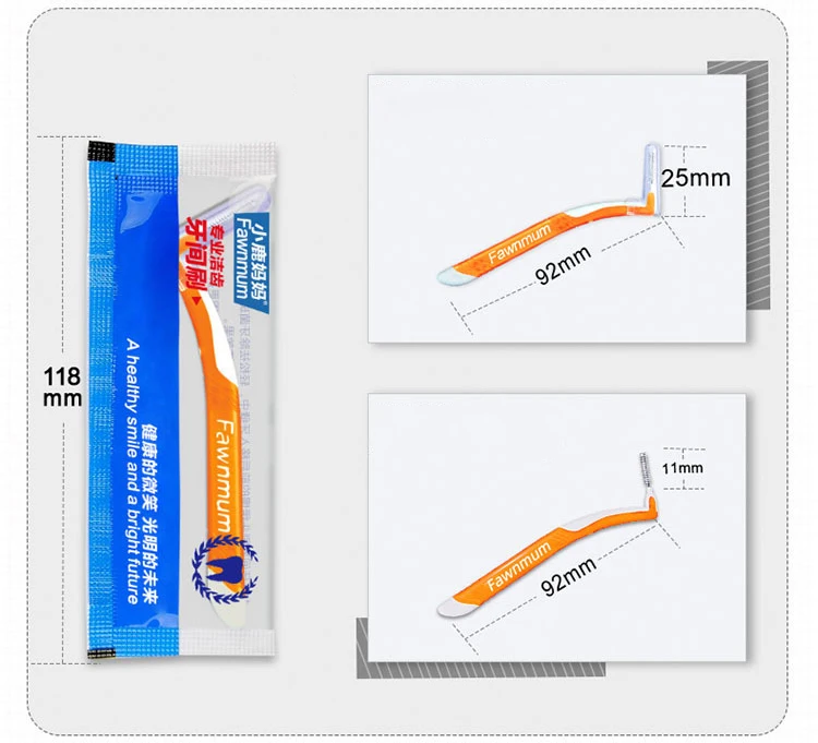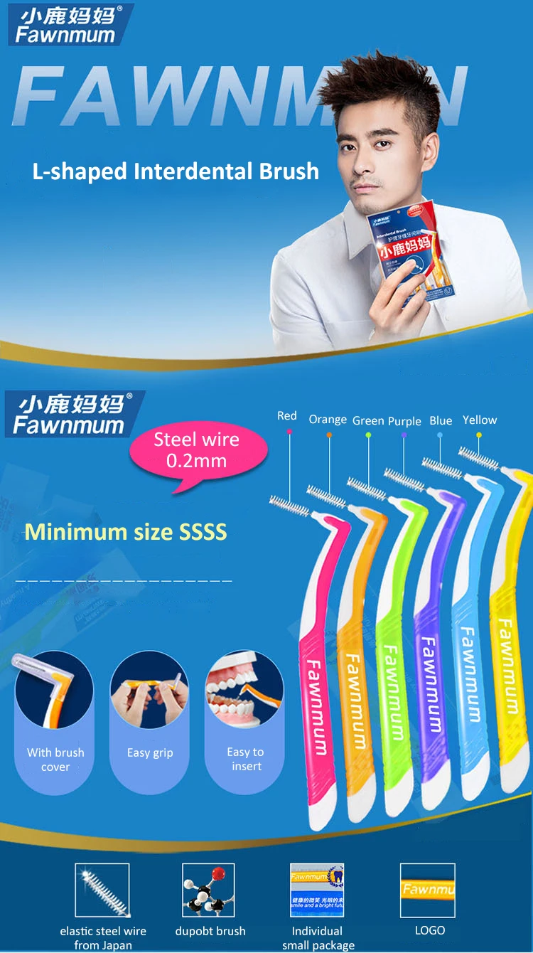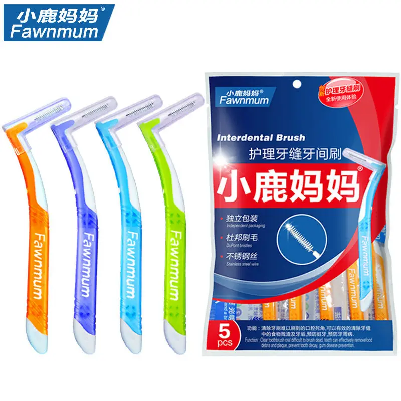 Олененок для мамыL-образная межзубная щетка, независимый дизайн упаковки, изготовленная из проволочной щетки из нержавеющей стали, нейлоновые щетинки dupont, модное моделирование в интеграции эргономики, более гуманное, просто правильный комфорт и поставляется с прозрачным защитным чехлом, легко носить с собой и более гигиенично.