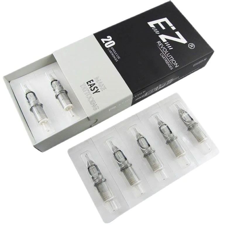 EZ тату новая революция татуировки иглы картриджиСовместим со всеми типами машин и ручек для картриджей.100% E.O газ стерилизованный и индивидуально упакованный.Гладкие края исключают дополнительные повреждения.Иглы изготовлены из 316 медицинской нержавеющей стали.Медицинские пластмассовые наконечники.20 игл в коробке.