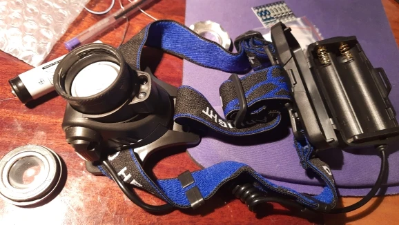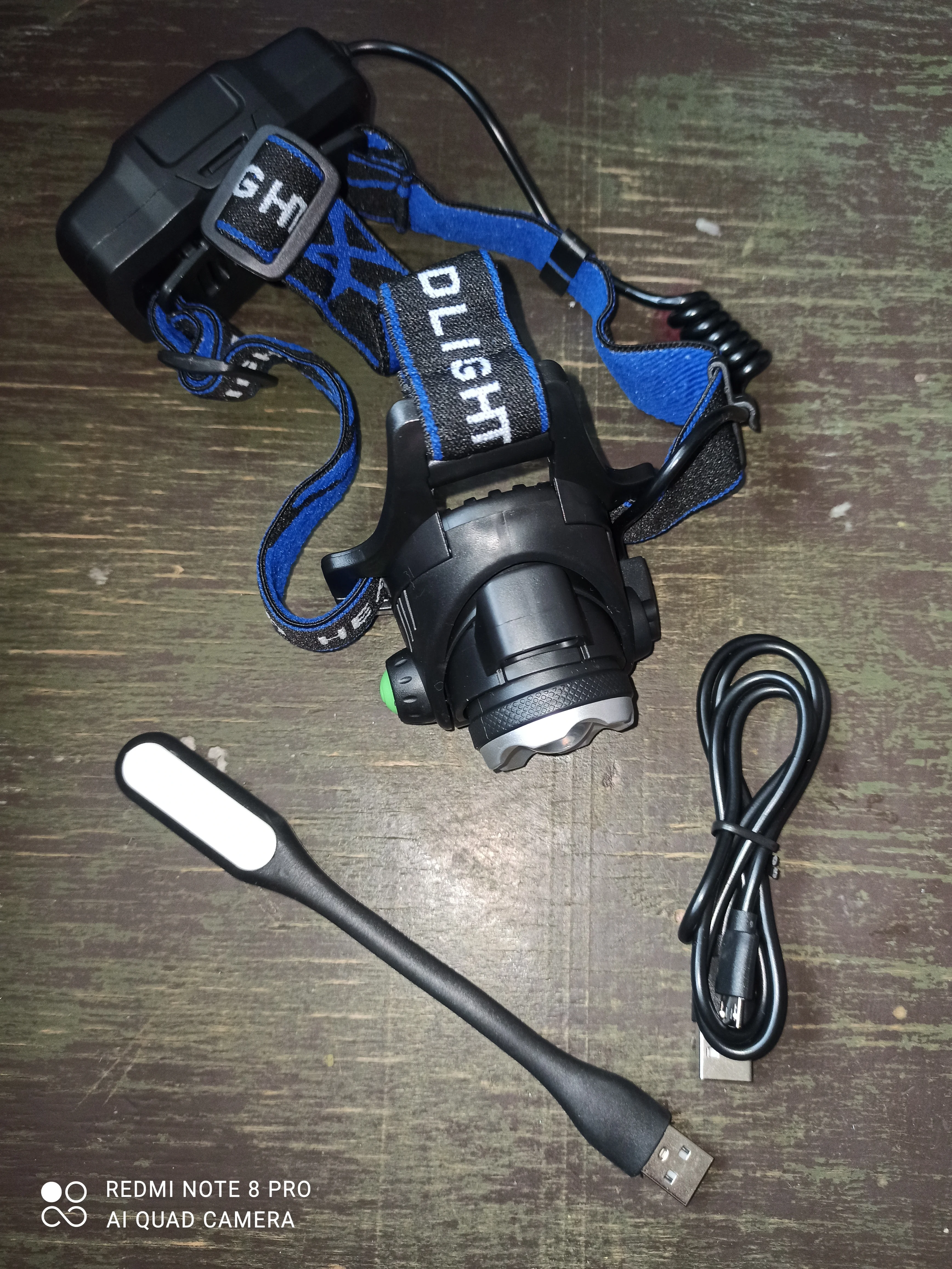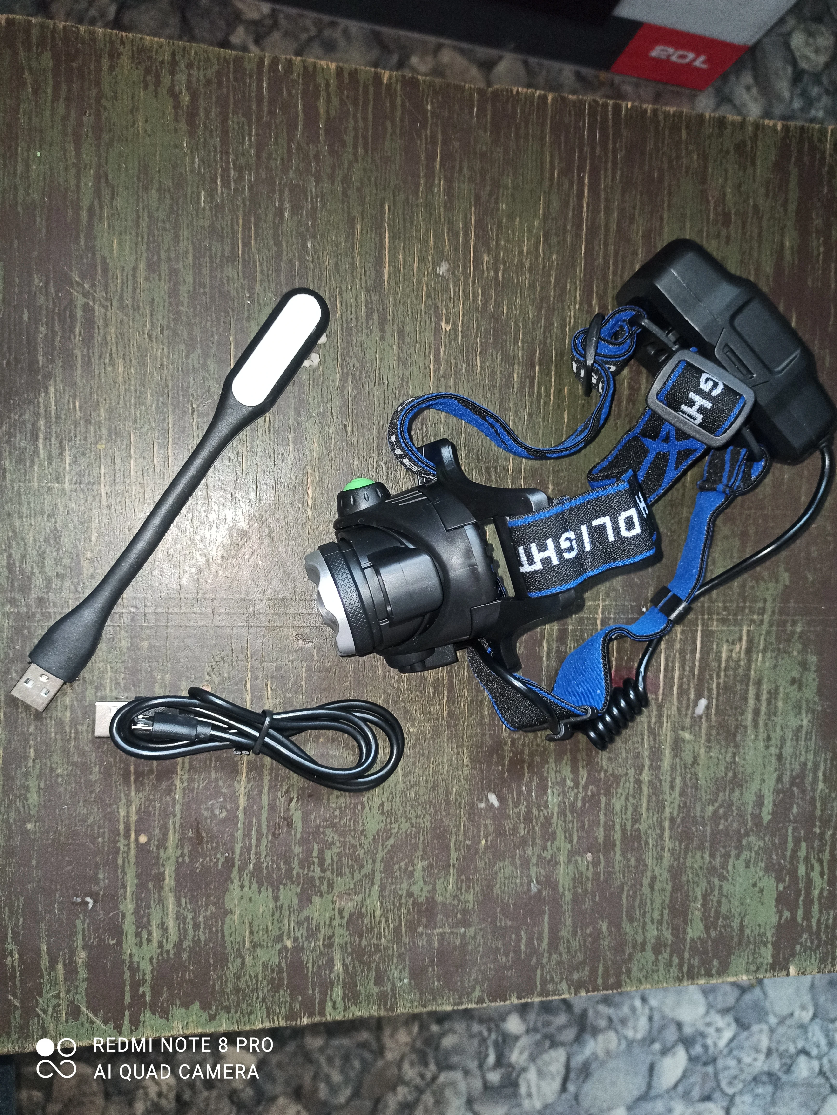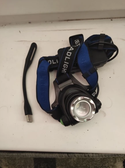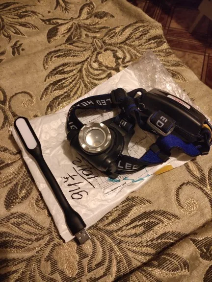 Фонарик отличный, светит ярко. На голове сидит отлично. Один нюанс был, на аккумах с плоски плюсом не достает плюс до контактной площадки, просто разбирается, подгинаются контакты и все, все работает. С одним аккумулятором включается. Еще небольшой подарок положили, ночничек.