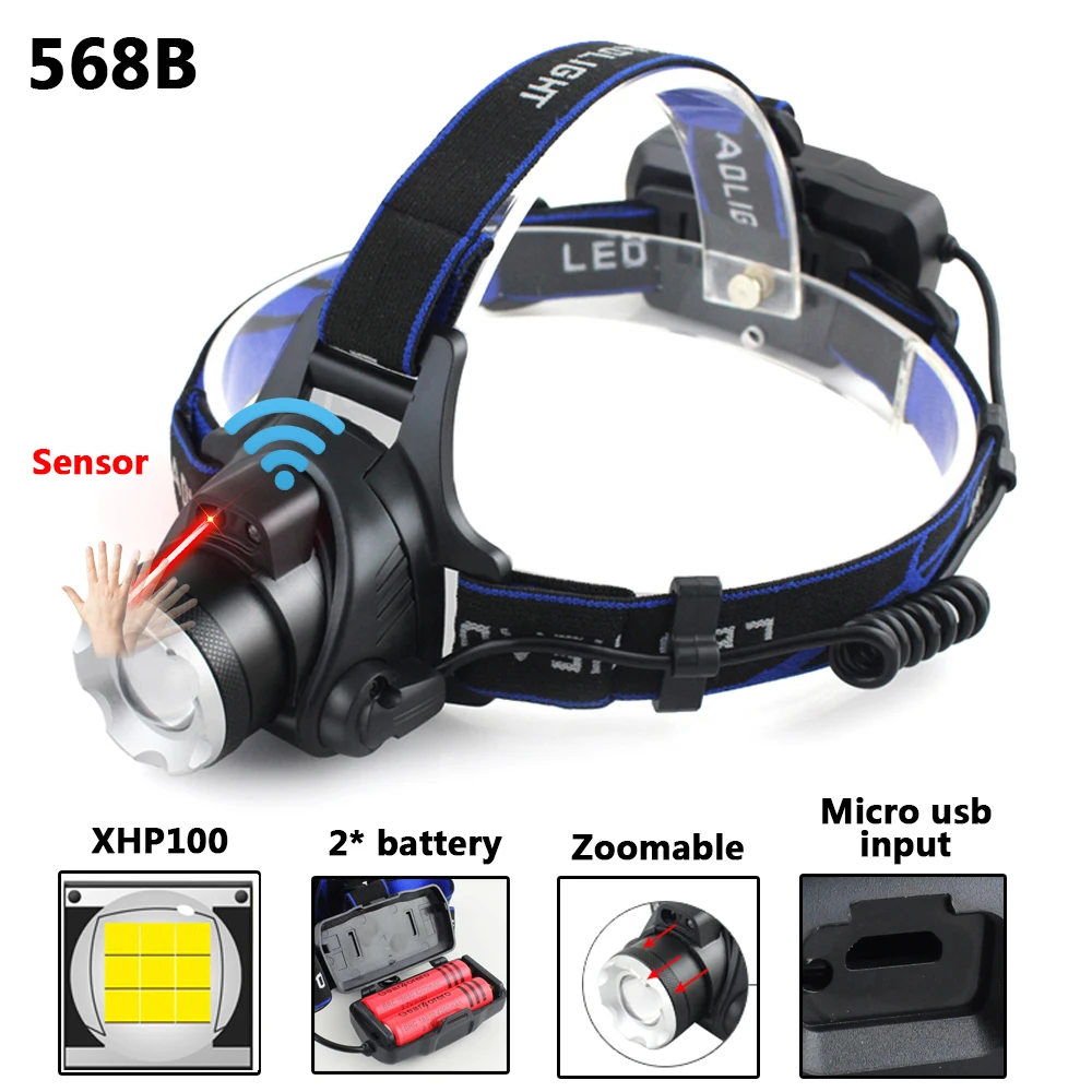 Светодиодный налобный фонарь XHP100, 9-ядерный, 4 цвета, масштабируемый налобный фонарик, фонарик, USB, перезаряжаемые фары, фонарь, водонепроницаемый для велосипеда