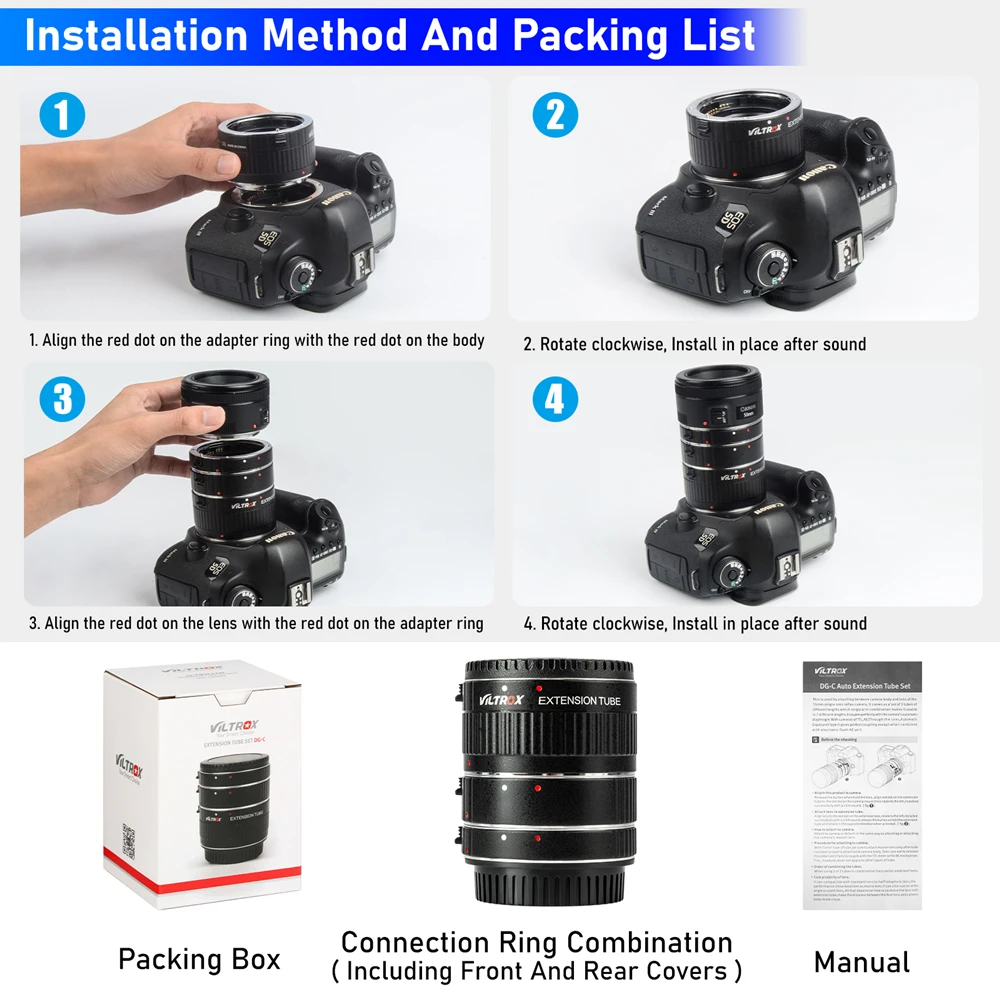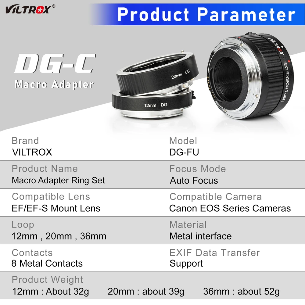 Удлинительная трубка Viltrox DG-C, Автофокус AF, макро, адаптер для объектива Canon EOS 2000D 1500D 850D 77D 60D 5D Mark IV III 7D II 80D 1DS