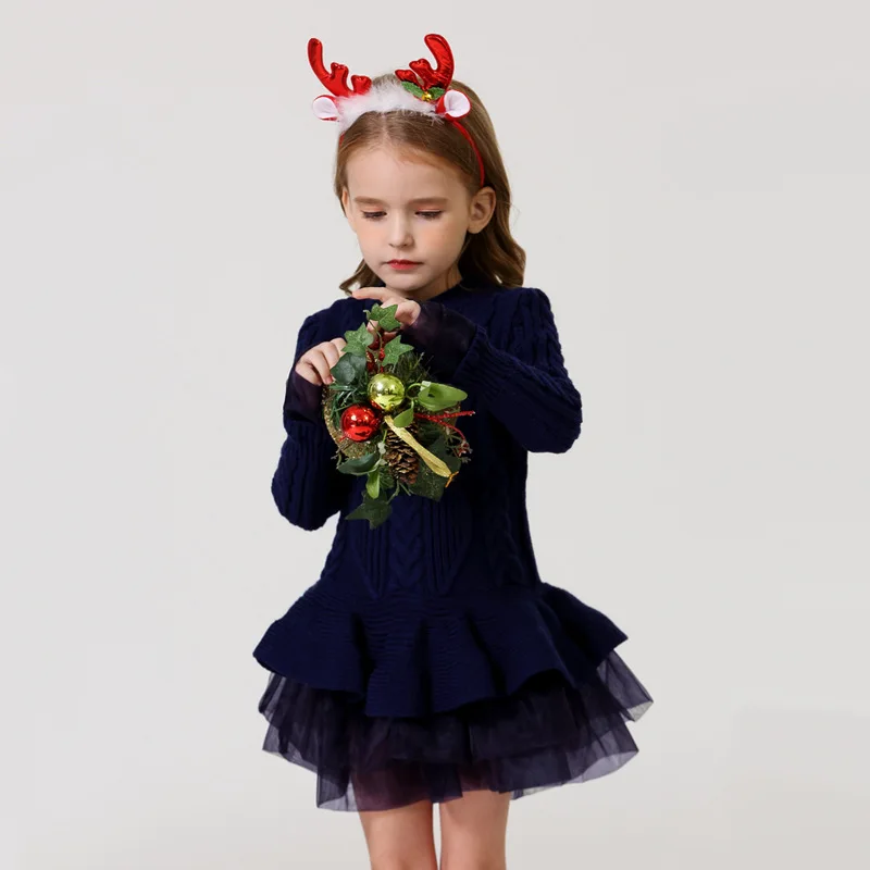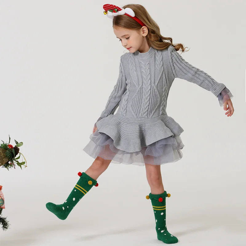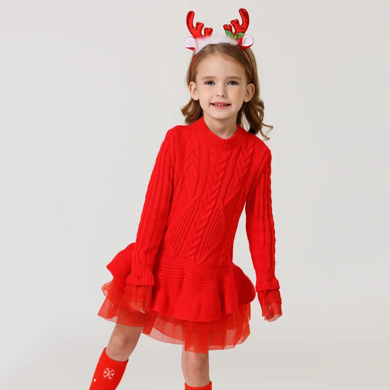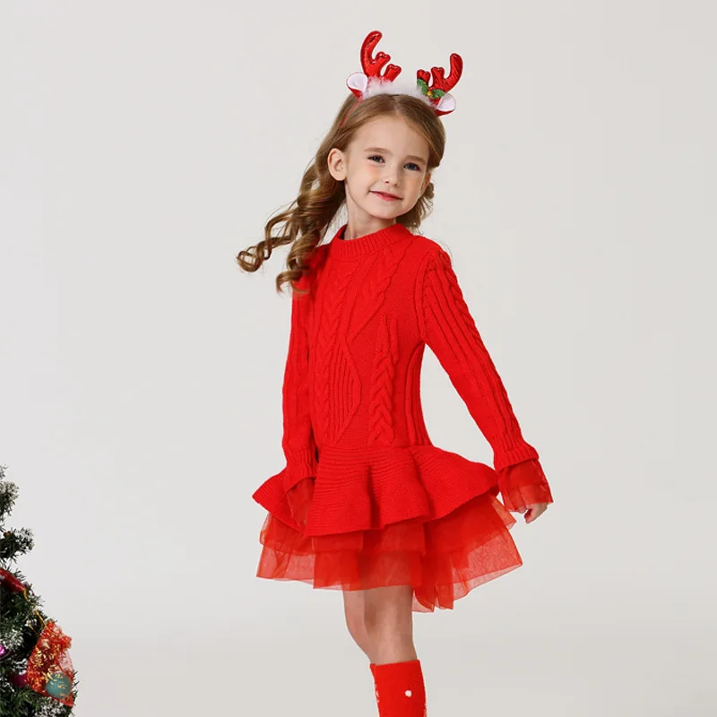 Красное платье-пачка для девочек вязаное платье с длинными рукавами для девочек осень-зима 2019, повседневные Детские платья из тюля для девочек, рождественское платье для вечеринки