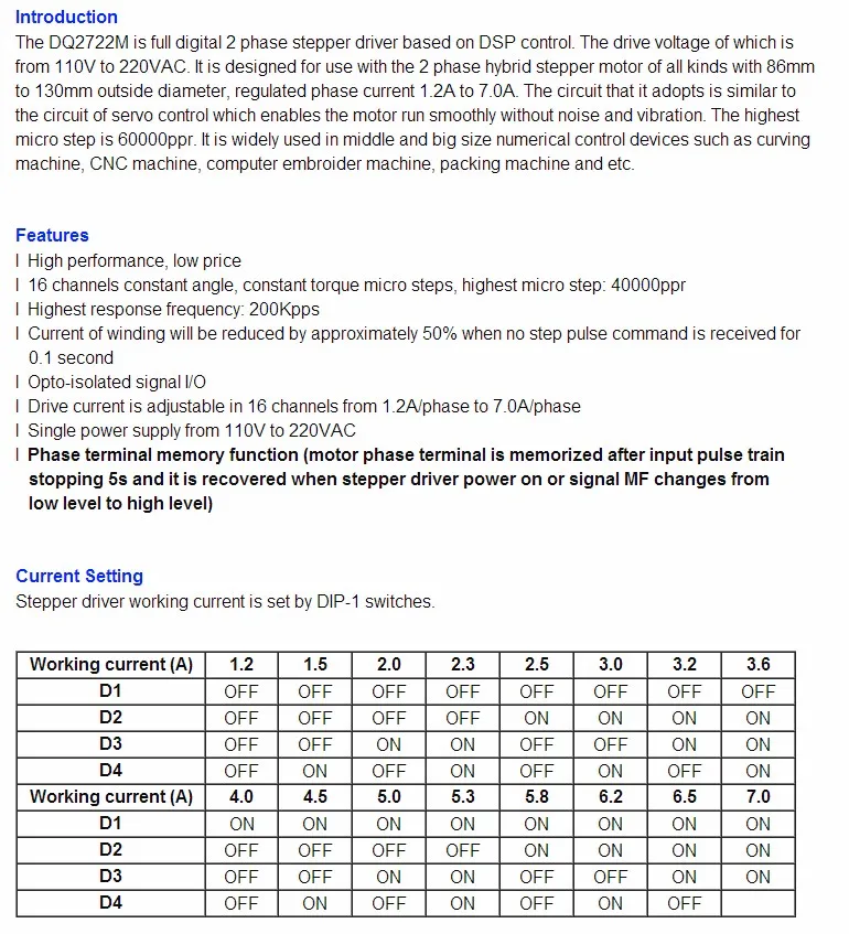 Wantai шаговый Цифровой Драйвер DQ2722MA 110-220 В 7.0A 300 микрошагов, соответствующие Nema 42 Шаговый двигатель CNC Лазерная мельница