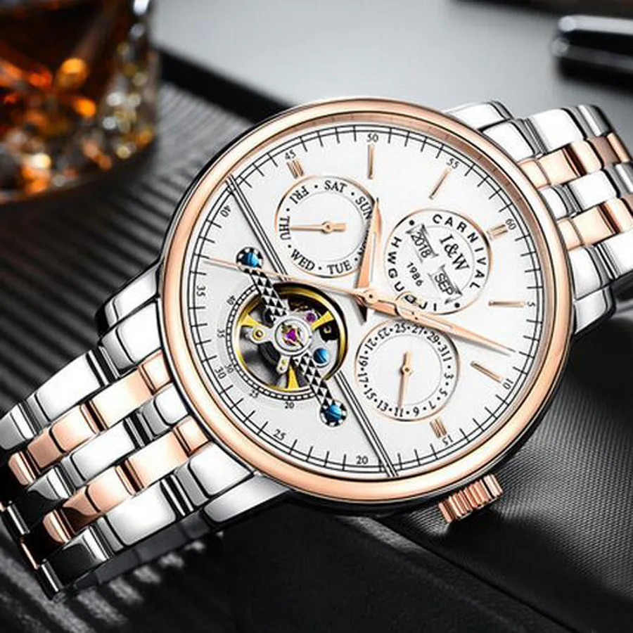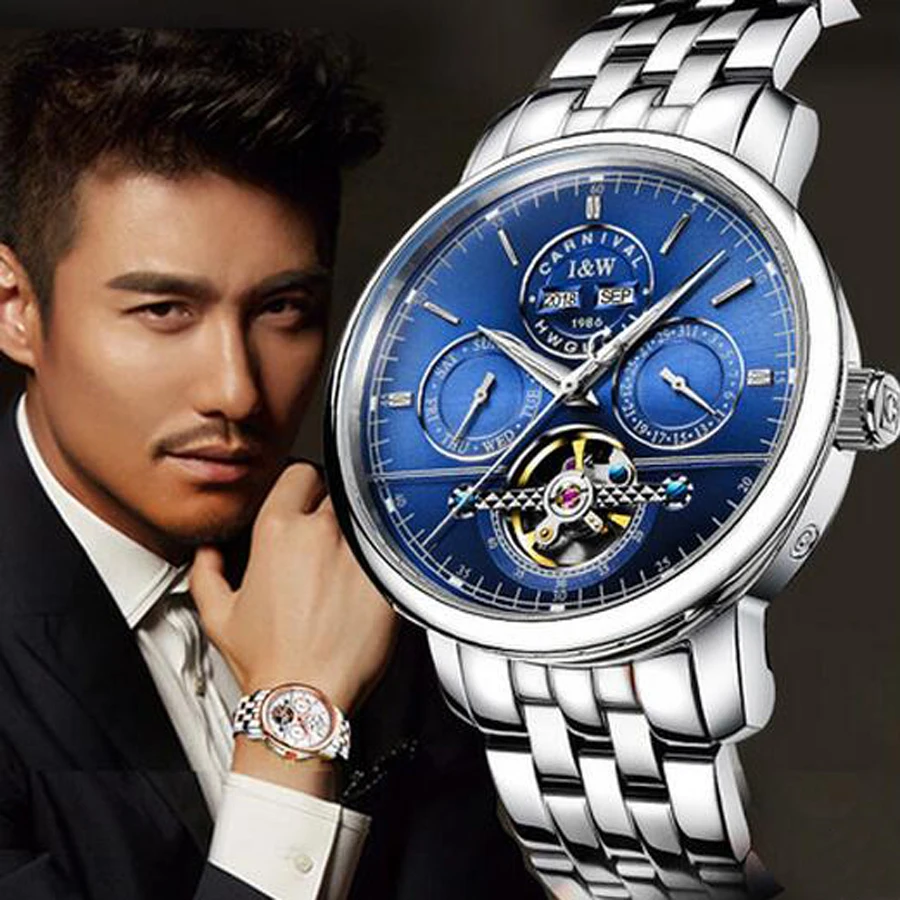 Карнавальный бренд, мужские часы, автоматические механические часы, мужские спортивные военные наручные часы, мужские синие часы с ремешком из нержавеющей стали