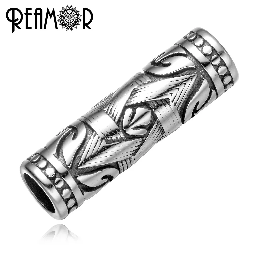 Бусины REAMOR 316l из нержавеющей стали X с узором, 8 мм, цилиндрич...