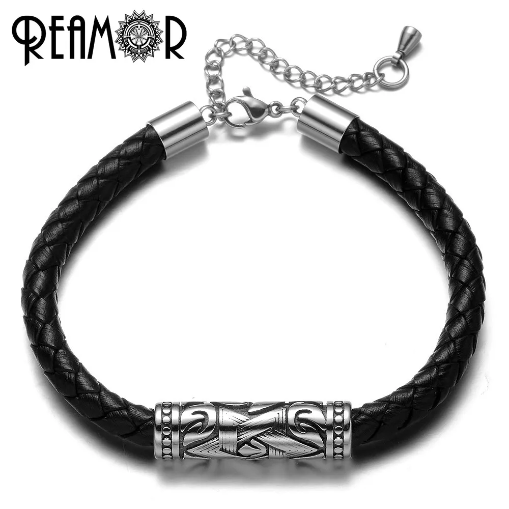 REAMOR ювелирные изделия размер отверстия 8 мм 316l браслет из кожи...