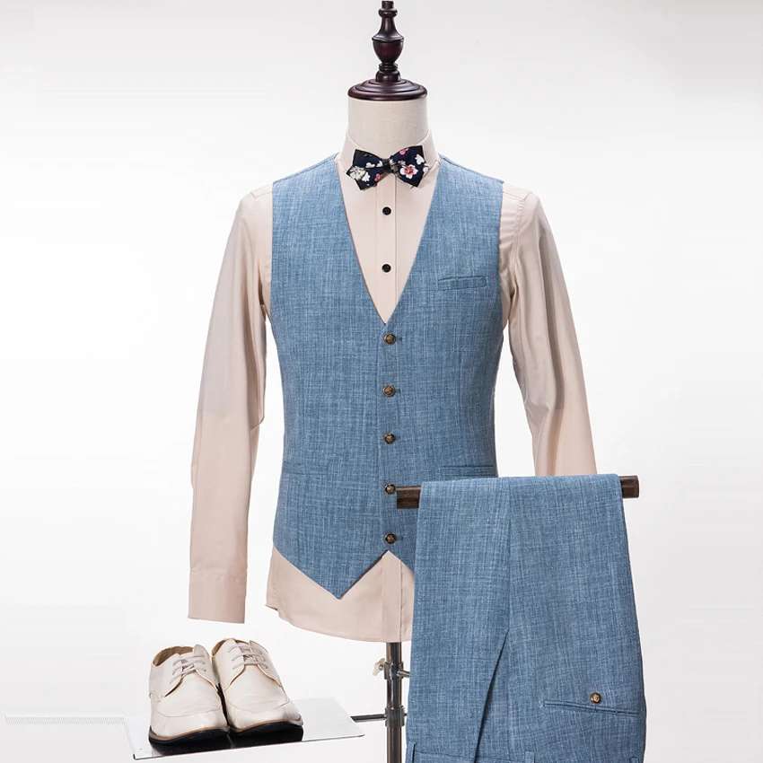 Мужской синий льняной костюм британский стиль 3 штуки приталенные с...