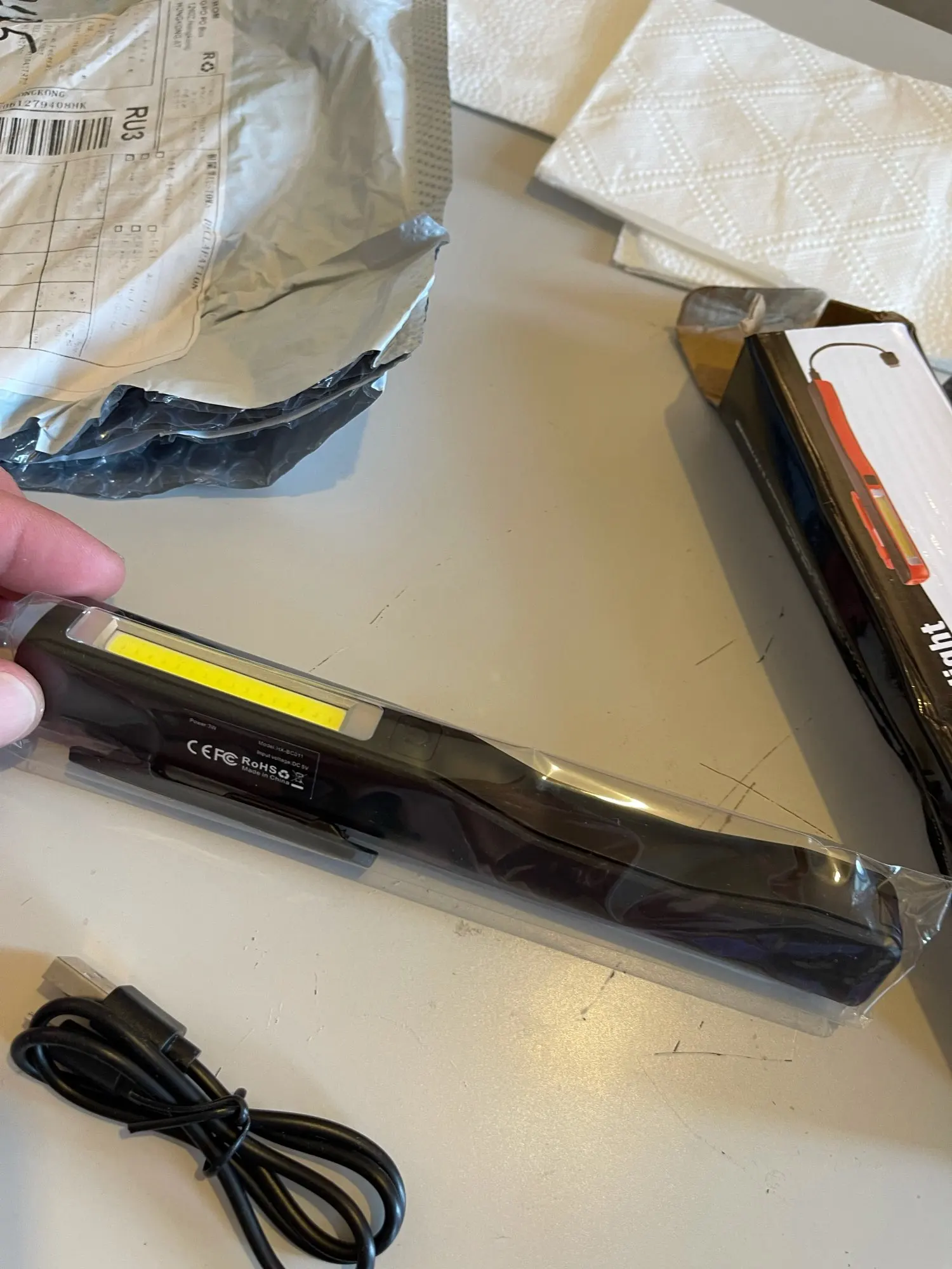 Посылка пришла в Екатеринбург мега быстро , заказывал 3 мая получил 17ого . Единственное упаковка была мятая , на фото видно , товар чудом уцелел . Фонарик качественный , закажу ещё парочку на запас и как сменный .