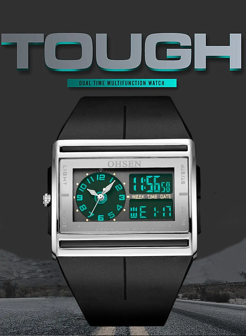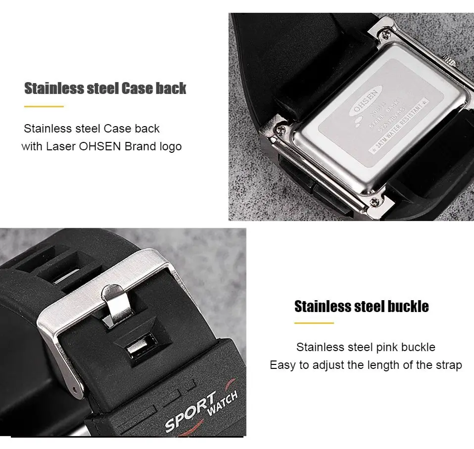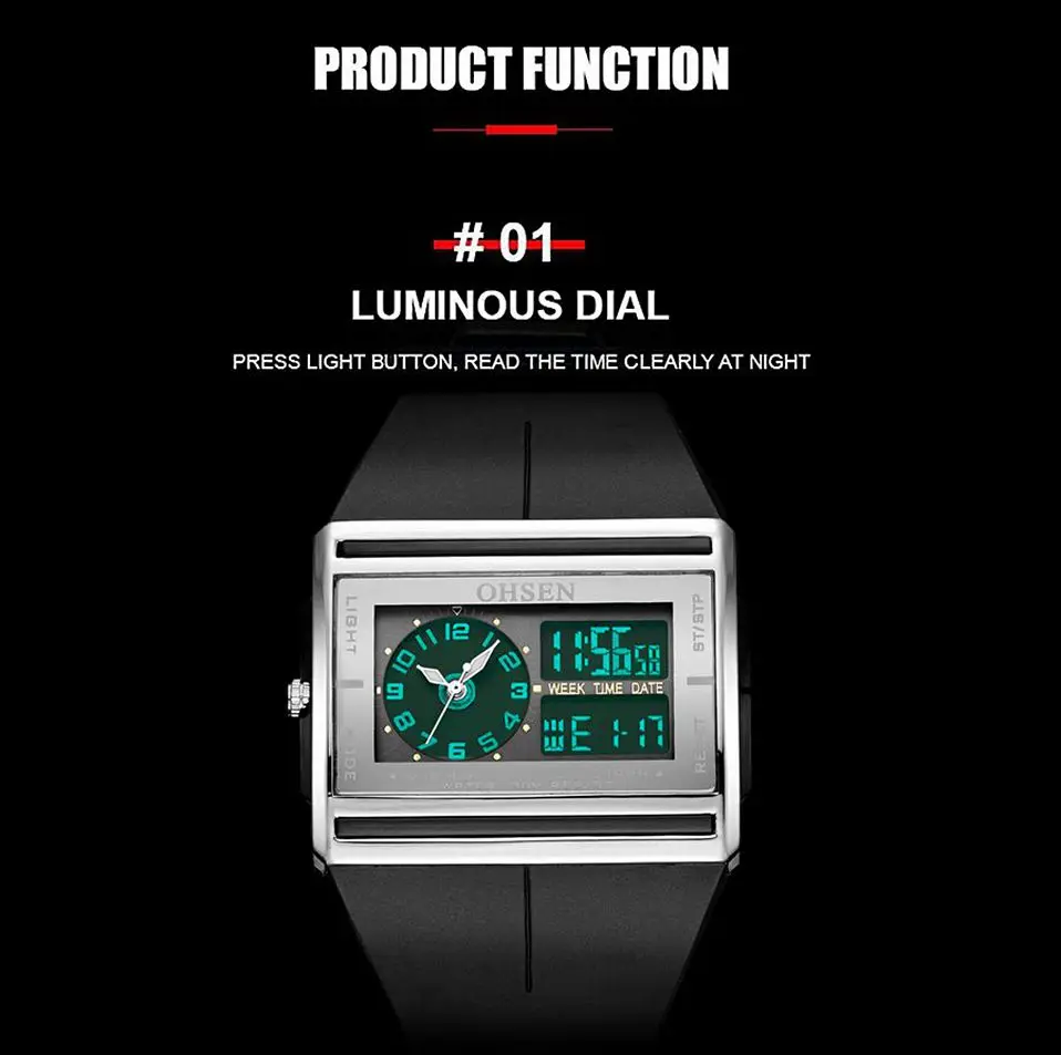 Мужские кварцевые часы OHSEN, модные водонепроницаемые цифровые часы с ЖК-дисплеем, армейские спортивные наручные часы