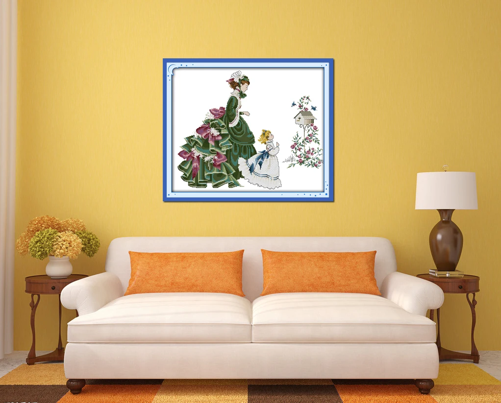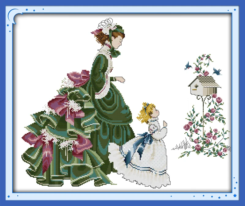 Радость воскресенье Рукоделие Сделай Сам Картина Вышивка крестиком вышивка мать и дочь узор вышивка крестиком Набор для вышивки набор Декор