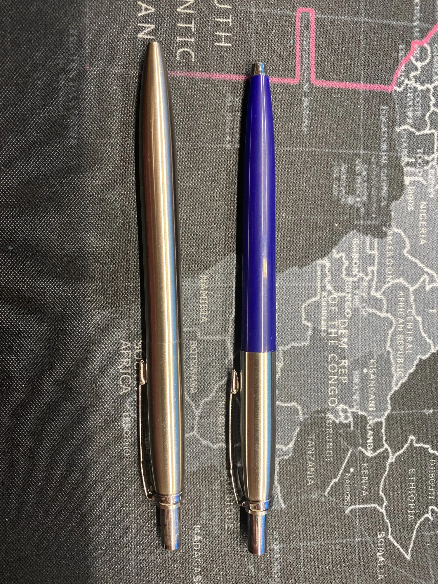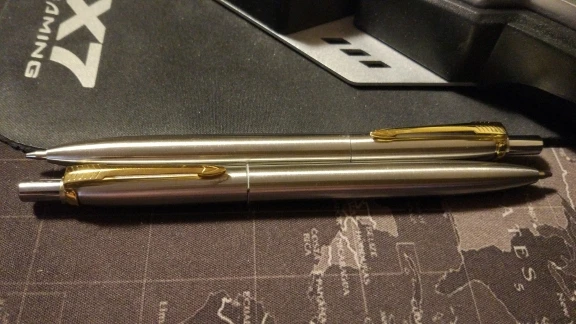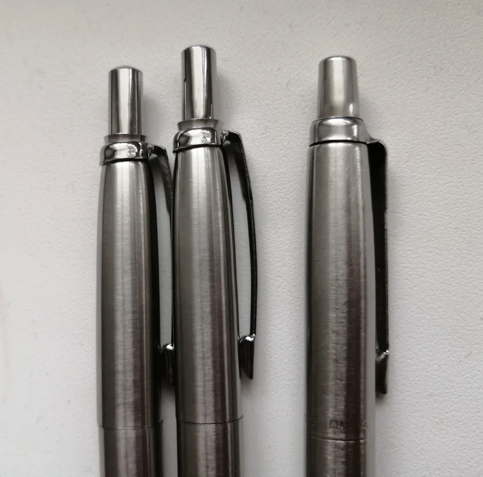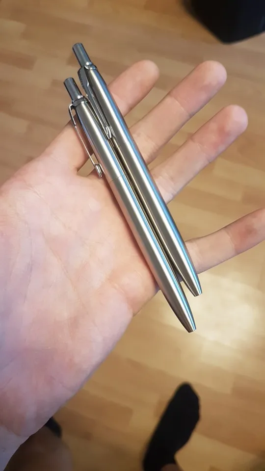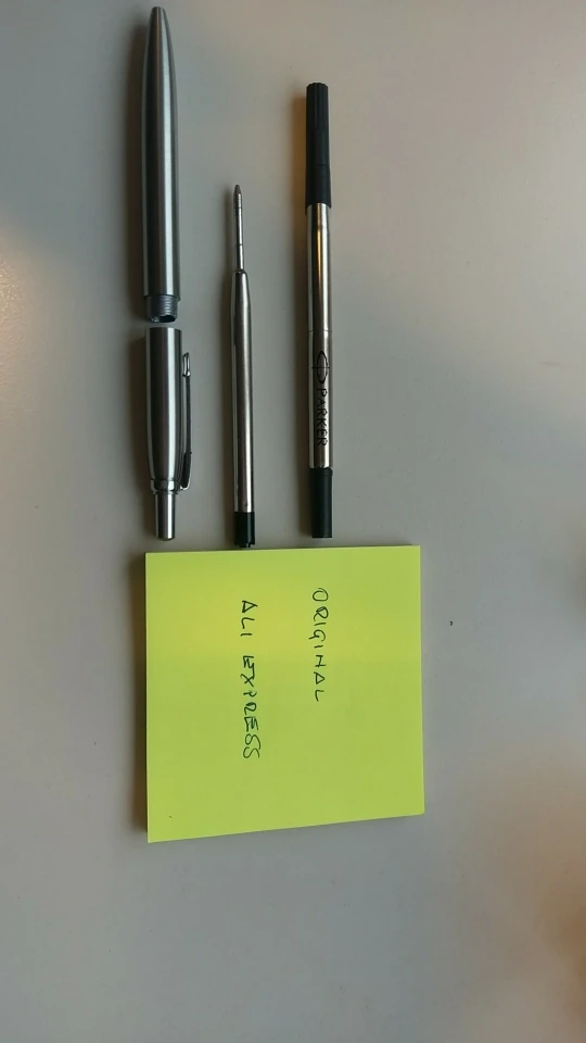 Я ручками еще не писала. Но в целом довольна! Здесь на фото сравнение с оригиналом, хотя эта ручка на оригинал не претендует. Красивая стильная и простая, приятная в руке ручка. Я пользуюсь паркером шариковым много лет из-за того, что она маленькая, удобная и мне ек обязательно покупать дорогие фирменные стержни, а не для понтов)) если смотреть отличия, то кнопка чуть длиннее, корпус к стержню толще, чем оригинал, не идеально прилегают части корпуса, но это для меня лично не имеет значения. Возможно, более широкий корпус не будет так удобен, когда пишешь долго, я проверю и дополню отзыв. Очень быстрая доставка, около 2 недель.