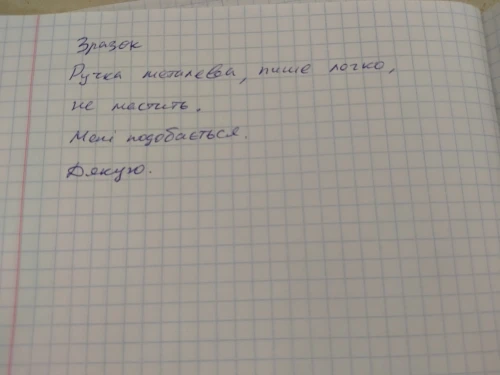 Ручки симпатичні, пишуть добре не мастять. З паркером нема можливості порівняти. В одній з ручок трохи затинає кнопка - не критично. Хочу ще купити справжній Паркер, щоб подивитись чи суттєва різниця і чи варто переплачувати.