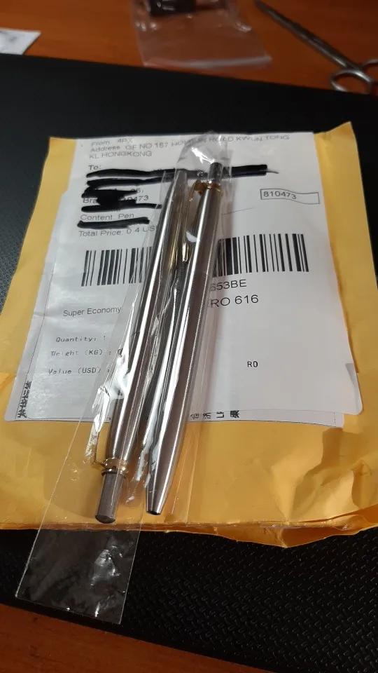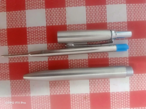Заказал две ручки сразу. У одной скоба, за которую ручку вешают оказалась криво приделана. Основа ручки пластмассовая. На эту основу сверху одета внешняя металлическая часть ручки. В общем дешёвые одноразовые понты. Хотя цена почти халявная, поэтому товар найдёт своего покупателя.