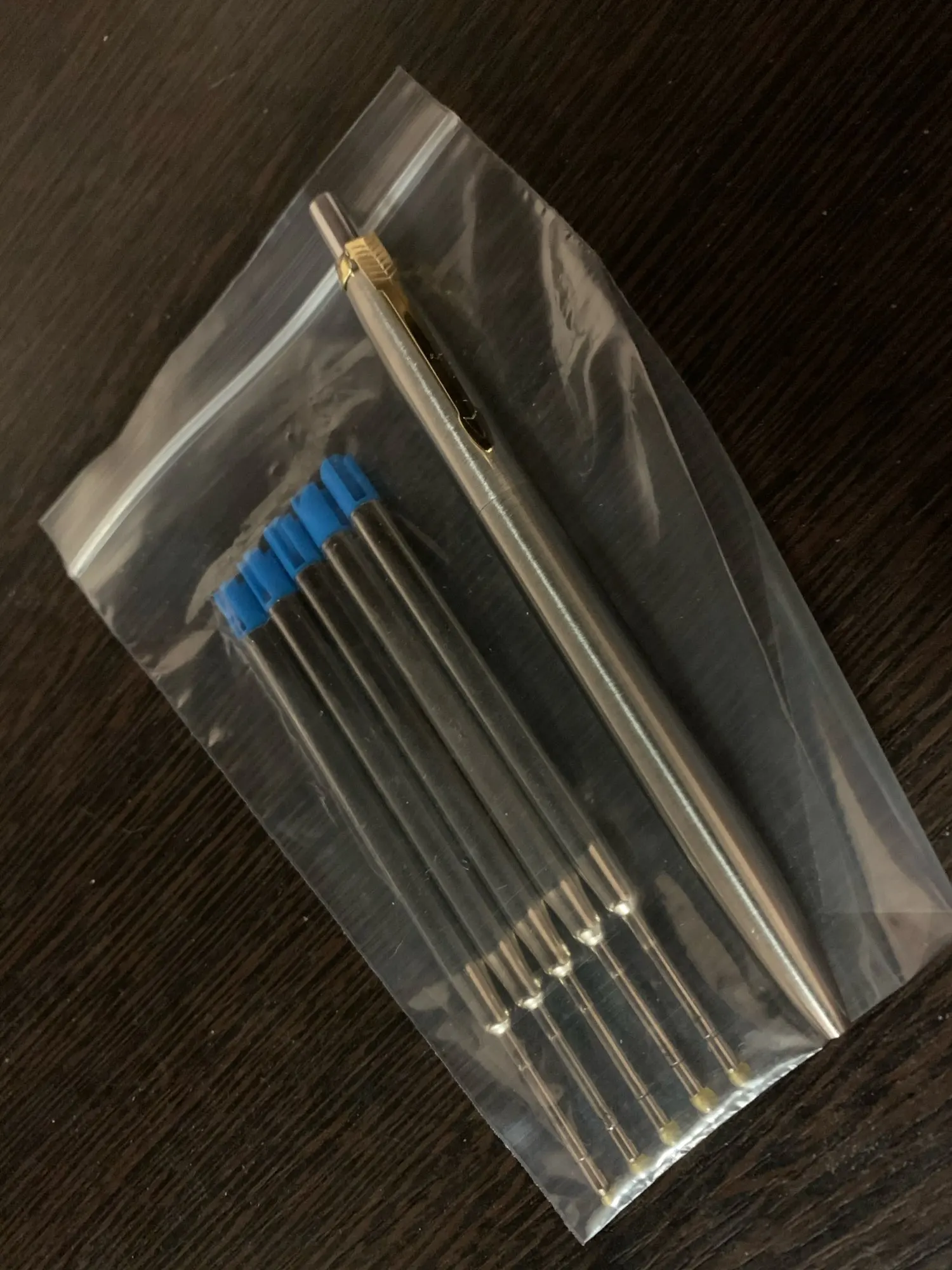 Доставка 20 дней в Московскую Область. Ручка маленькая, очень лёгкая. Стержни все пишут. Всё норм.