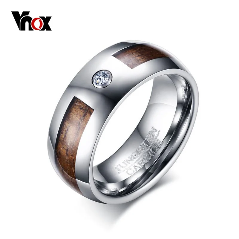 Vnox 8 мм Дерево Вольфрам карбида Обручение кольцо полированный Для Мужчин's Обручальные кольца с кубического циркония ювелирные изделия