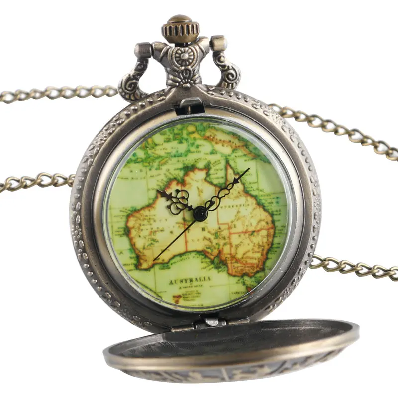 Часы карманные кварцевые медные, в стиле ретро, с изображением двенадцати созвездий, карты Австралии, половины охотника, для мужчин и женщин