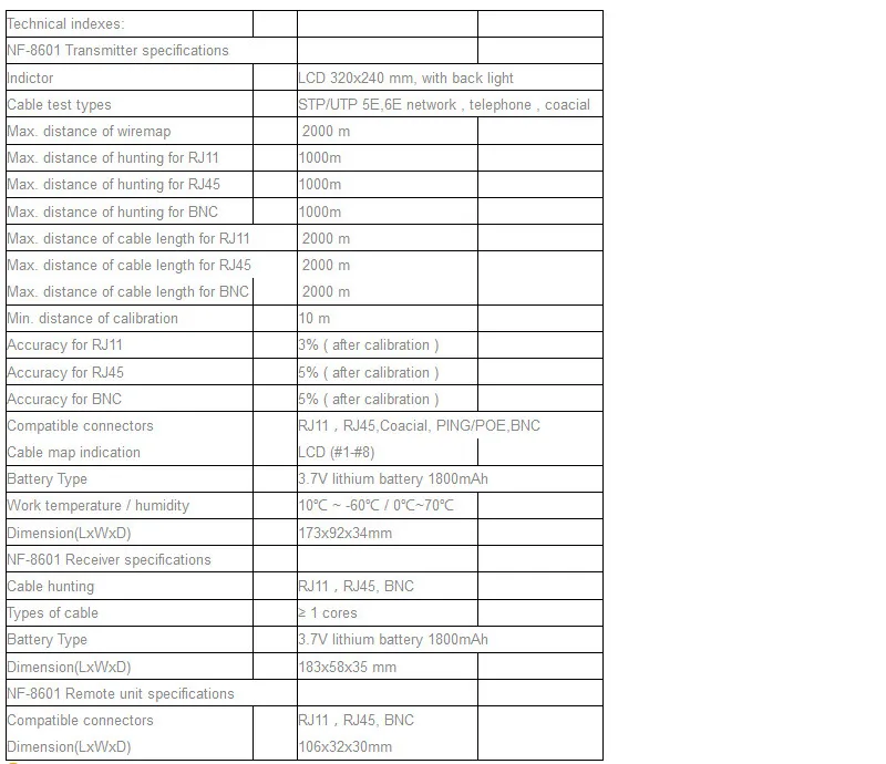 NF-8601 Многофункциональный тестер сетевого кабеля тестер ЖК-Кабеля Тестер точки останова для RJ45, RJ11, BNC, PING/POE с CE
