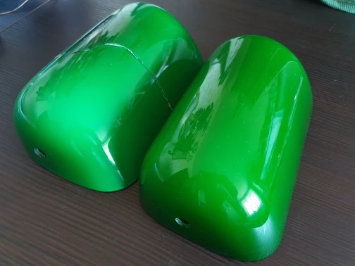 Чехол для лампы из зеленого стекла очень красивый и хорошо подходит для лампы. Я боился, что измерения будут неправильными, но все в порядке. Ширина лампы немного (2 или 3 мм) больше, чем ширина крышки.