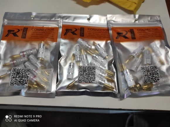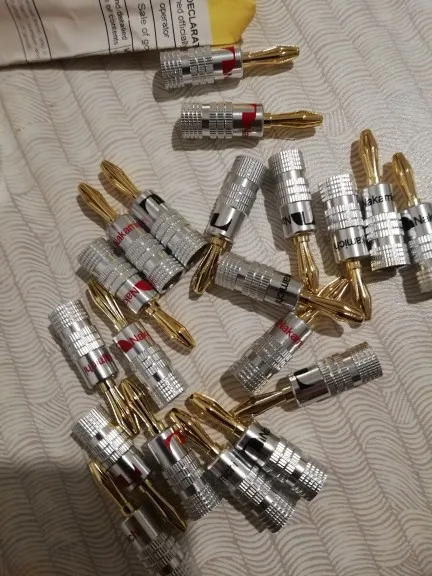 Быстрая доставка, до Санкт-Петербурга за 20 дней. Посылка упакована в пузырчатый конверт. Все дошло без повреждений. Упаковано по 20 штук (10 пар). Заводская упаковка. Очень хорошее качество. На кабеле 2х2,5 монтируется без проблем. В ресивер и колонки входит с усилием. Контакт надёжный. Искажений звука нет. Хороший продавец и товар, рекомендую.