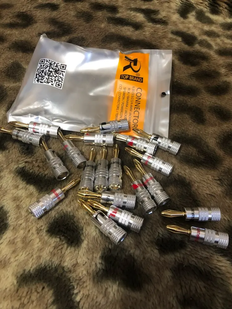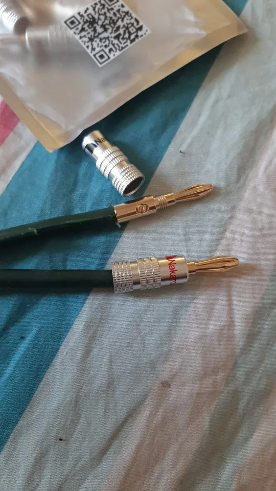 качество отличное звучит на удивление очень хорошо, лучше чем бананы м радио рынка, комплект полный не чего больше не надо в плане болтики все в комплекте , конструкция бананов тугая очень туго заходит в клему, продавец молодец общается хорошо, советую