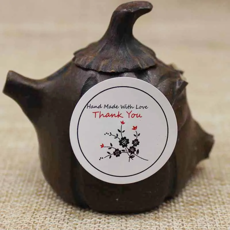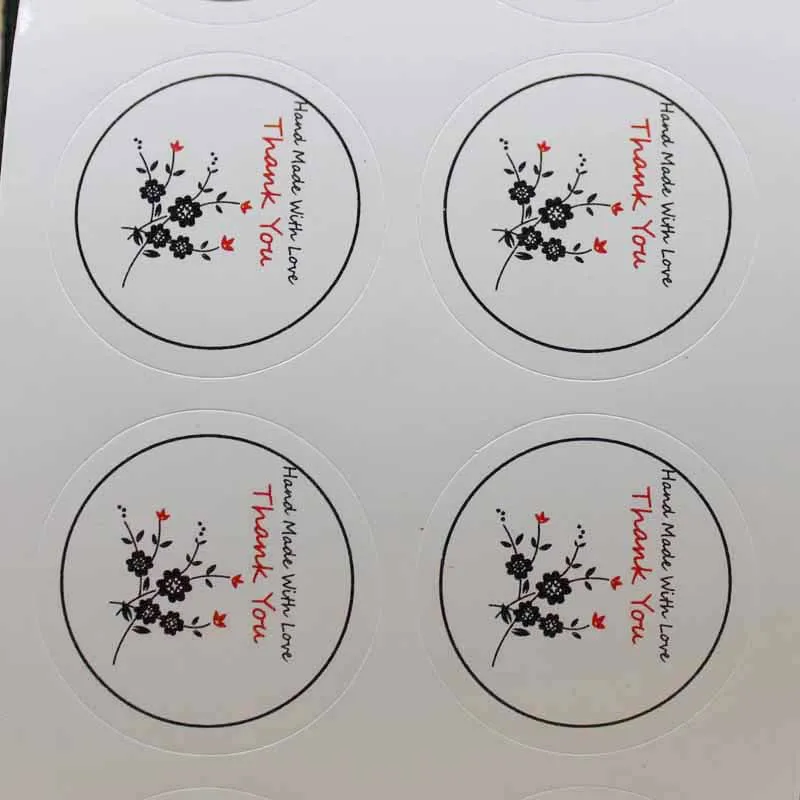 3 см 100 шт., наклейки с цветочным принтом, благодарим Вас, крафтбелые наклейки, клейкие этикетки для запечатывания, дополнительная лого цену на заказ