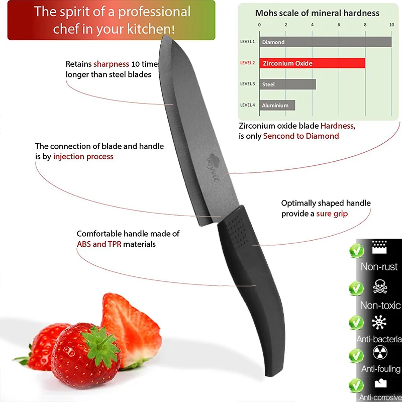 Нож Керамический, 6543 дюйма, циркониевый, Черное лезвие
