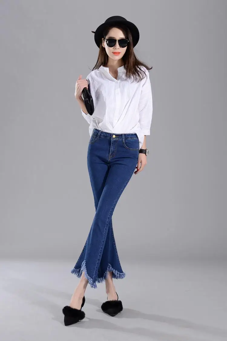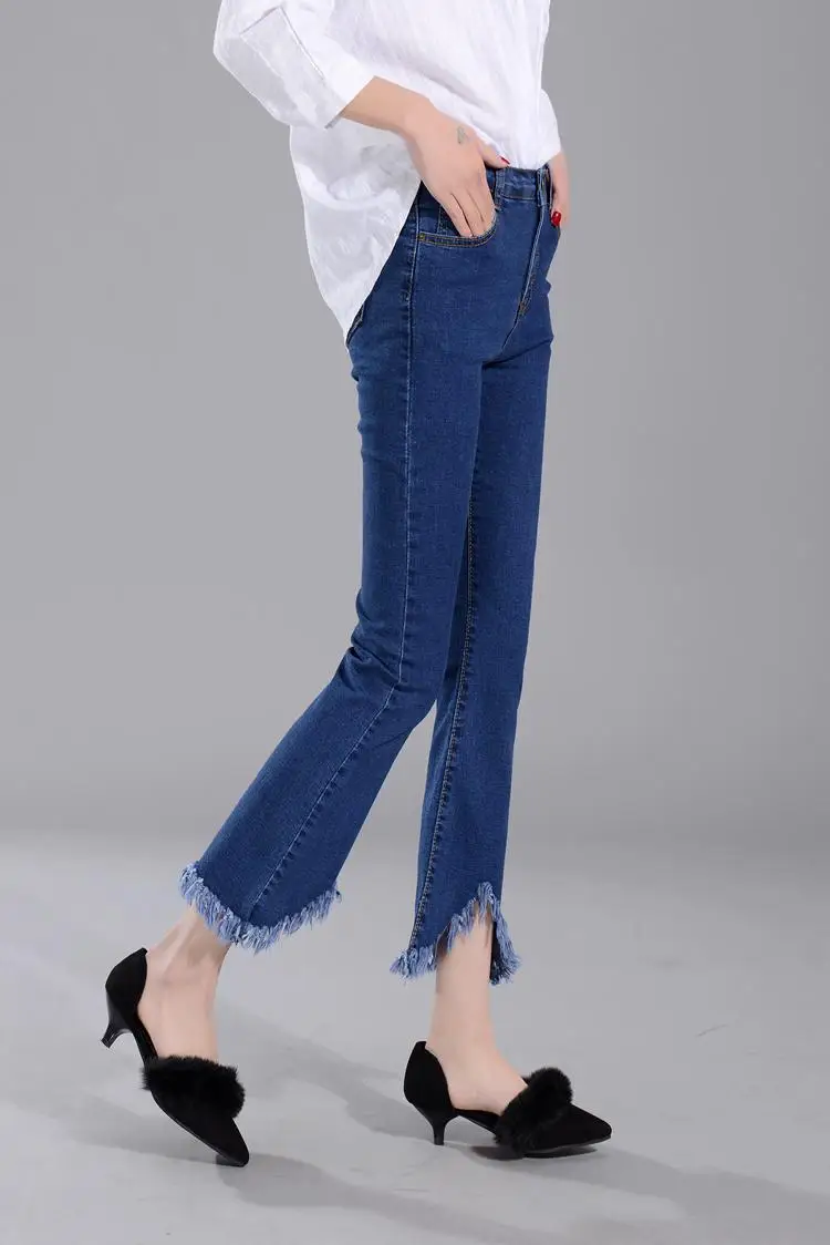 2021 эластичные хлопковые джинсы, женские Модные расклешенные брюки, джинсовые нестандартные джинсы с бахромой и высокой талией, узкие Женские Брюки с карманами