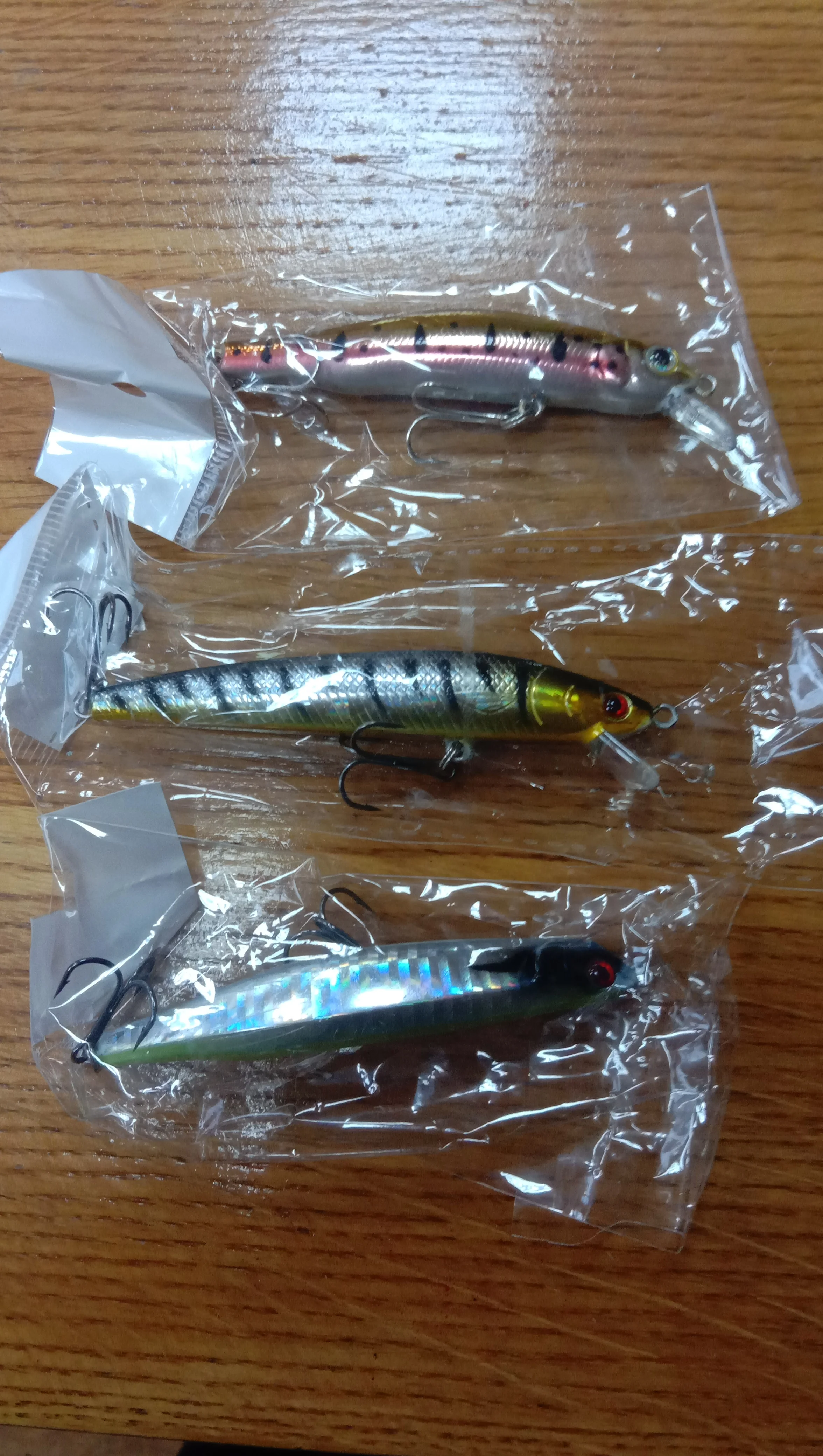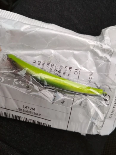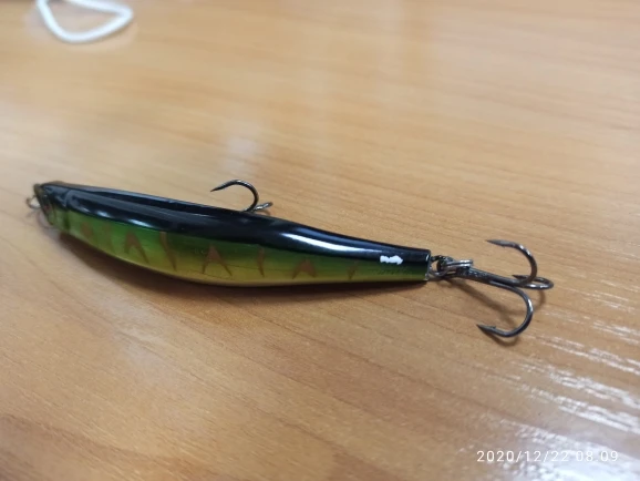 Воблерок плавающий. Доставка быстрая! Есть продольные полосочки неизвестного происхождения, возможно трещины на лаке. Само тело воблера в нескольких местах плохо зашлифовано, возможно такое ноу-хау :). На водоеме ещё не проверял, надеюсь на уловистость! Крючки острые! Спасибо продавцу!