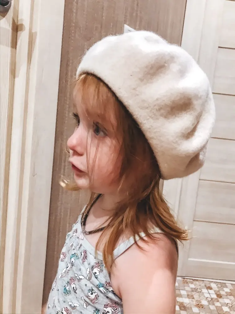 Хороший берет, песочного цвета, как и хотела. Качество отличное берите, нам 2 годика и она нам в самый раз, думаю для деток старше 3-4-х лет будет мала
