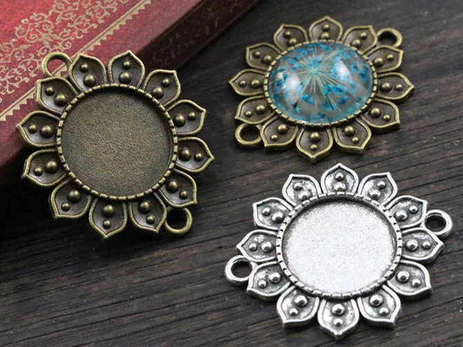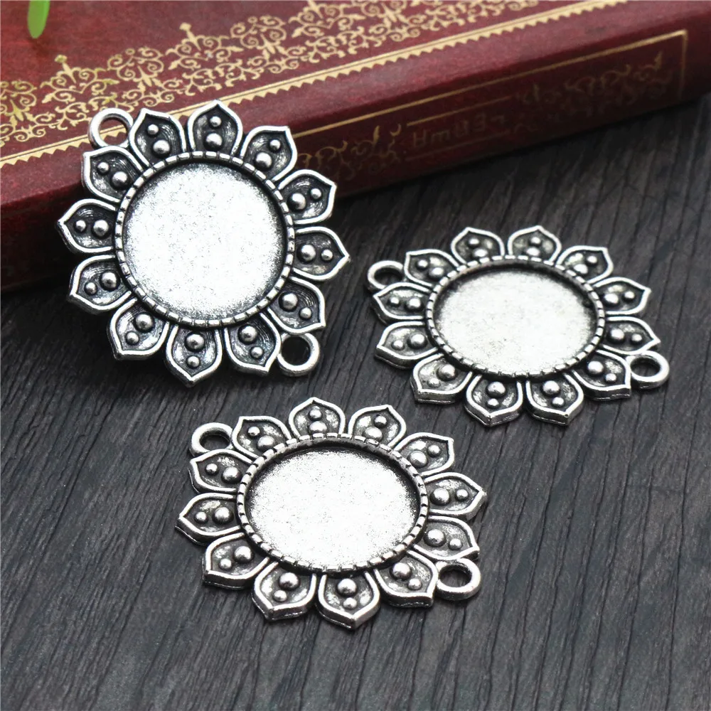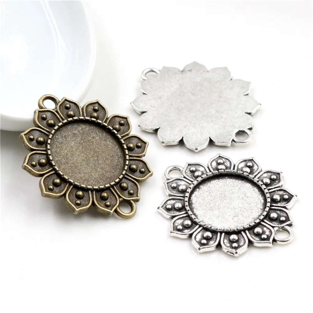 10 шт 18 мм Внутренний размер античная бронза и посеребренный цветок соединение Стиль кабошон базовая Камея Подвеска Подвески