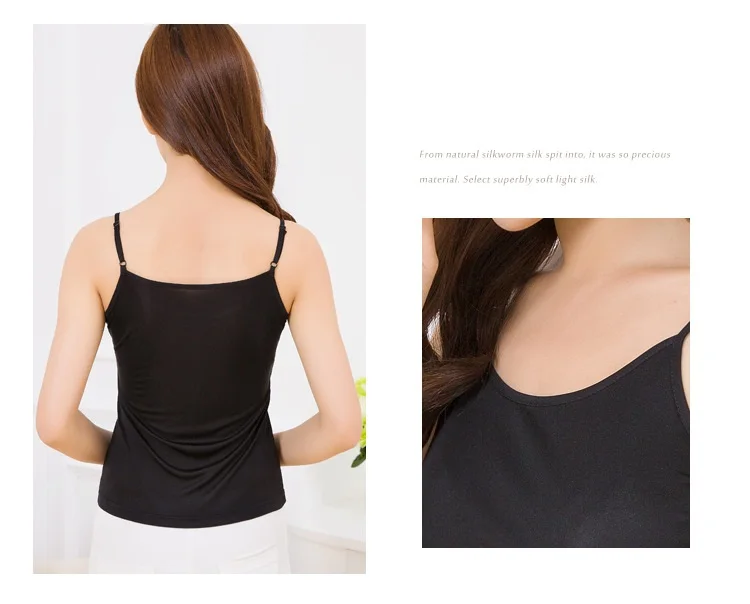 Женские топы из 100% чистого шелка, простые женские топы с лямкой на шее, черные однотонные повседневные женские майки