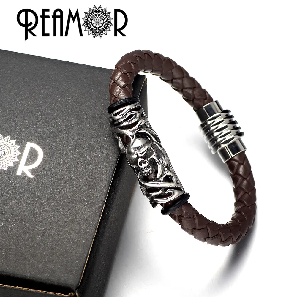 REAMOR ювелирные изделия размер отверстия 8 мм 316l браслет из кожи...