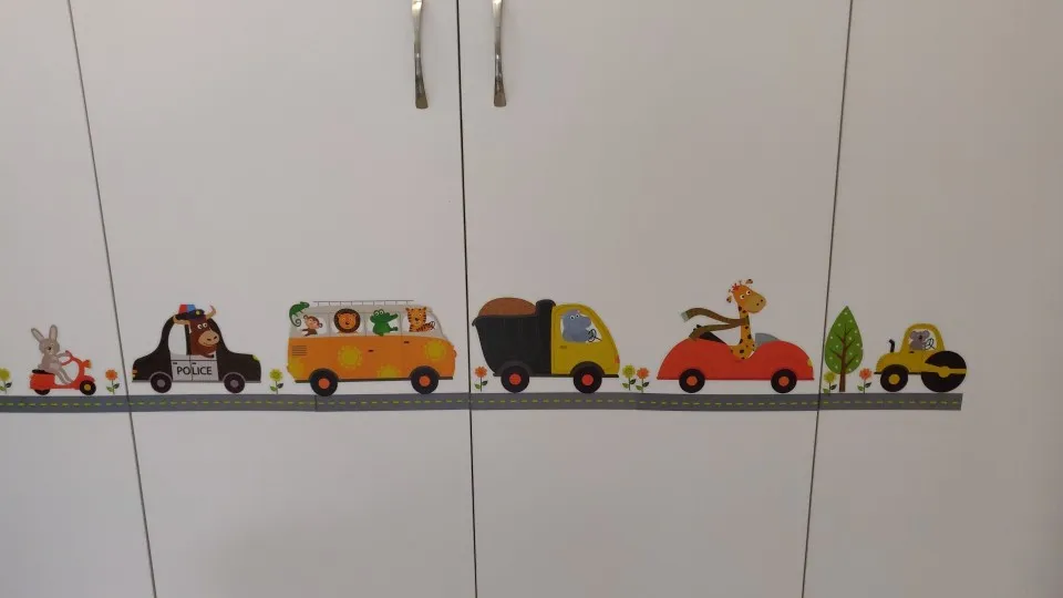 Мультяшные милые животные, автомобильные настенные наклейки, детские наклейки для мальчиков, детская комната, спальня, настенные наклейки, Декор, Фреска, детский подарок