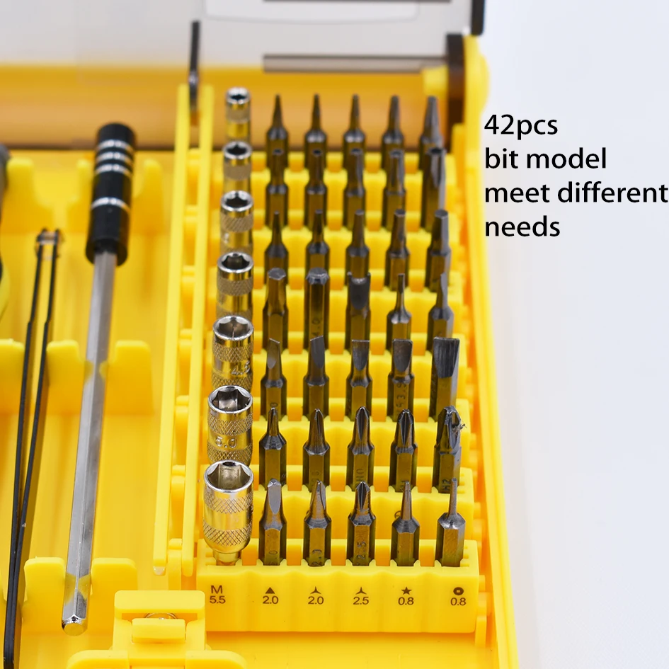 45 в 1 прецизионный Отвертки Набор включены 42 бит модеи, один из резиновой ручкой (около 11,5 см), расширение стержня
