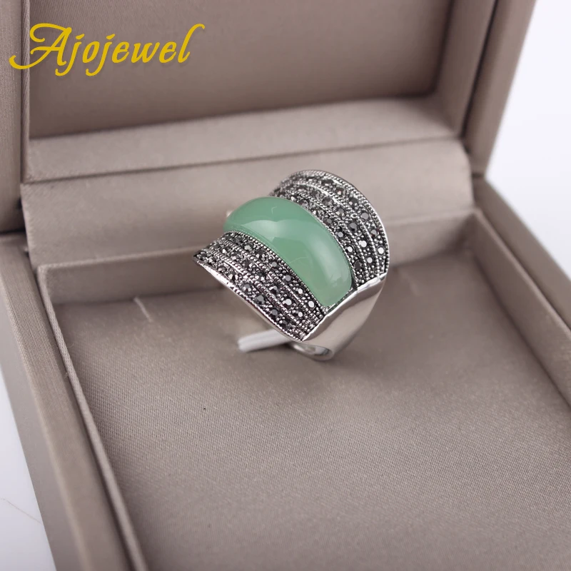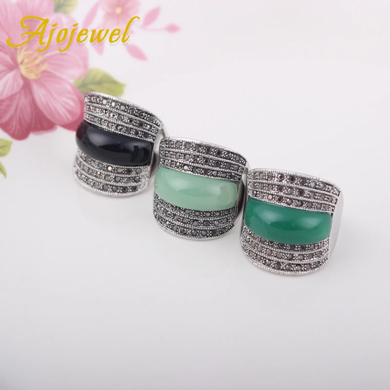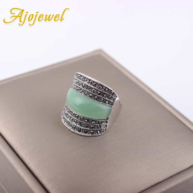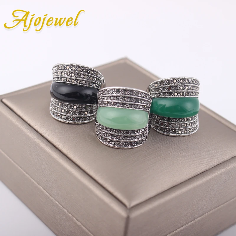 Оригинальные геометрические винтажные кольца Ajojewel для женщин с зеленымчернымювелирное изделие с красными камнями Широким Кольцом