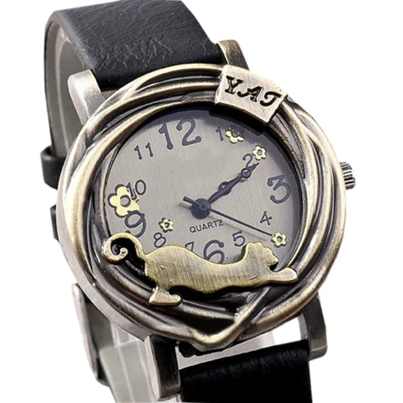 Винтажный ювелирный чехол с изображением кота цветка из искусственной кожи, Кварцевые аналоговые наручные часы.