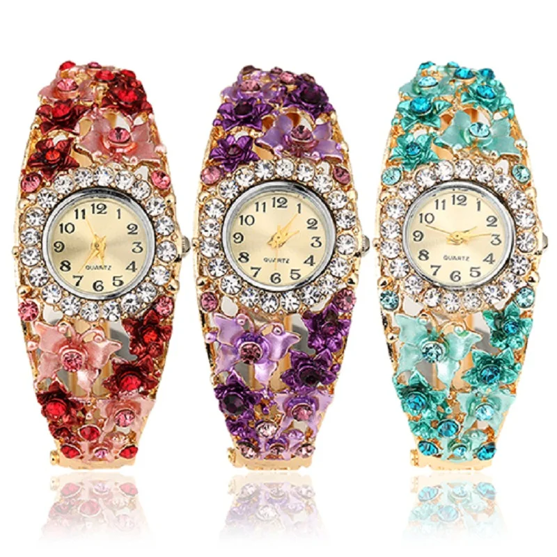 Модные женские часы с цветком и бабочкой, круглый циферблат, браслет со стразами, наручные часы