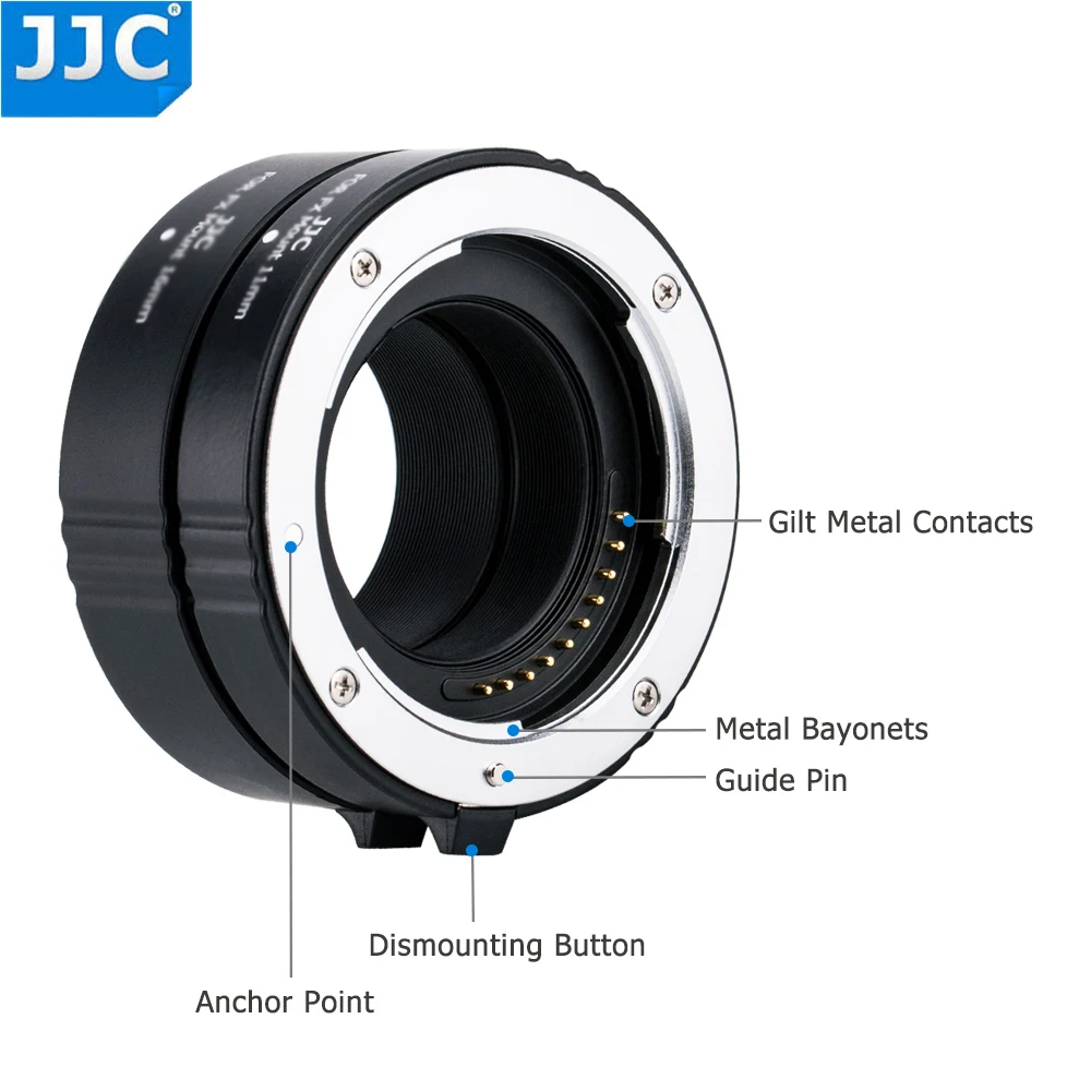 Серия JJC AET автоматических удлинительных трубок позволяет вашему объективу фокусироваться ближе, чем его обычное Минимальное расстояние фокусировки. Установив расстояние между корпусом камеры и объективом, расстояние фокусировки сокращается, и создается эффект увеличения объекта. Удлинительные трубки, таким образом, обычно используются для макросъемки, а иногда и для крупным портретам. Среди серии JJC AET автоматических удлинительных трубок AET-CS набор включает 12 мм, 20 мм и 36 мм автоматических трубок, а также AET-NS; AET-M43S набор включает 10 мм, 16 мм автоматические трубки и так AET-NEXS; AET-C12-это трубка 12 мм, а AET-C25-трубка 25 мм. Удлинительные трубки можно использовать индивидуально или прикрепить вместе для достижения желаемого результата фокусировки. Эти трубки являются полностью автоматическими трубами, поэтому они могут передавать все электронные функции от объектива к камере, включая автофокус и автоматическую экспозицию. Удлинительные трубки не имеют оптических элементов, поэтому они не будут ухудшать качество ваших линз. Обратите внимание, что JJC AET-FXS Автоматическая удлинительная трубка, совместимая с Fujifilm X-mount, также скоро появится.