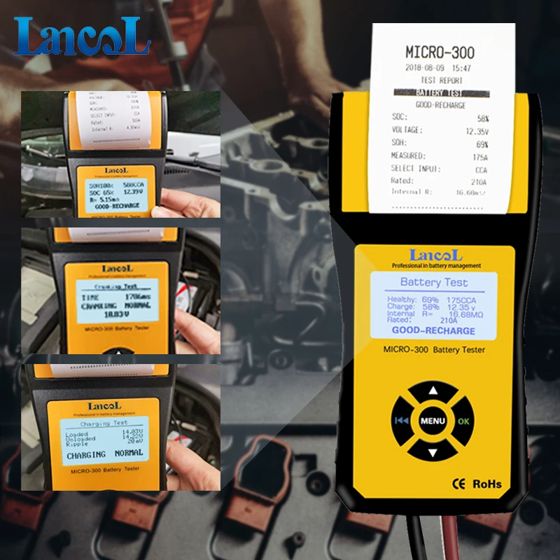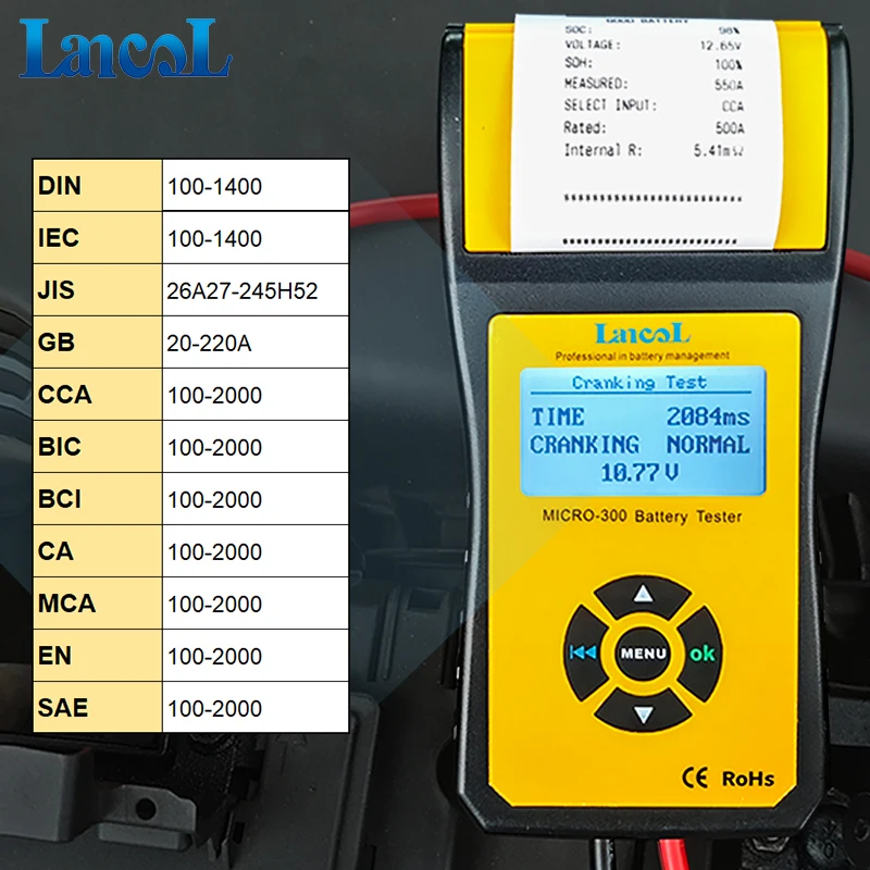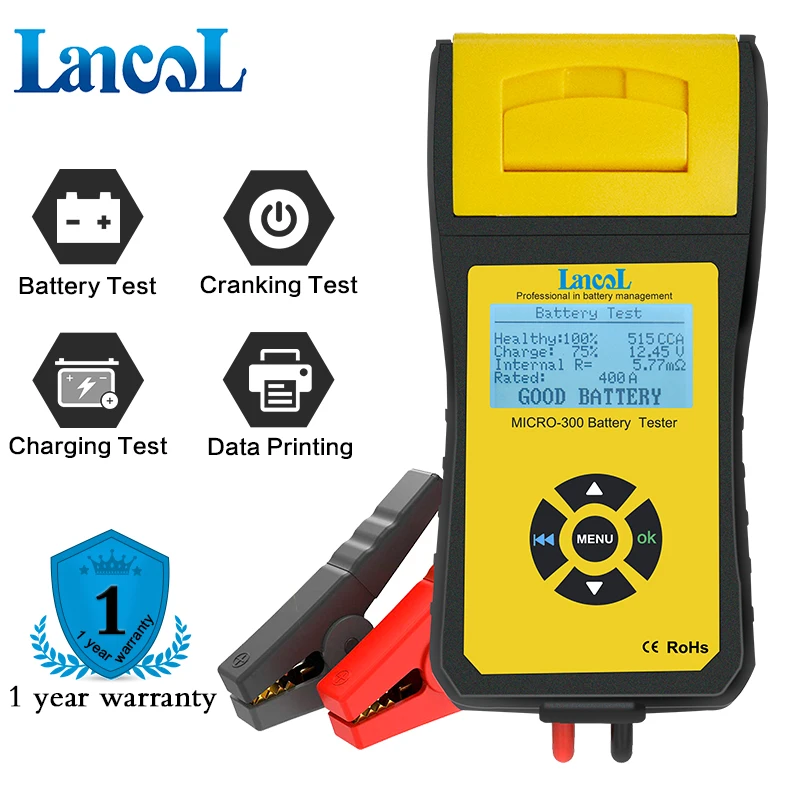 MICRO-300 тестер батарей использует в настоящее время самую передовую в мире технологию тестирования проводимости, чтобы легко, быстро и точно измерить фактические холодные Скручивающиеся амперы мощности пусковой батареи автомобиля, здоровое состояние самой батареи, И общая вина системы запуска транспортного средства и системы зарядки, Которые могут помочь сервисному обслуживанию быстро и точно найти проблему, таким образом, чтобы достичь быстрого ремонта автомобиля.
