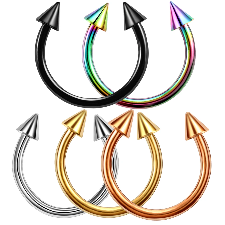 2 шт. 16 г кольцо из нержавеющей стали для пирсинга носа Подкова шип перегородка пирсинг для бровей Спираль пирсинг губ пирсинг нариз