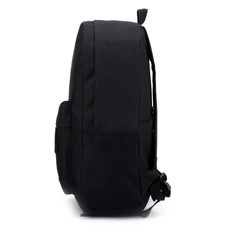 На нем нет никаких надписей, это просто чисто черный рюкзак.