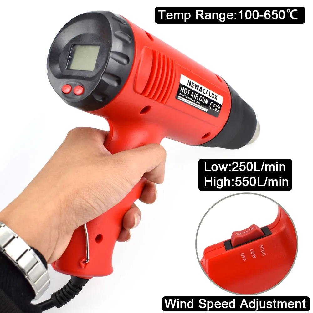 2000 Вт 220 В ЕС Plug Промышленный Электрический Пистолет Горячего Воздуха Терморегулятор ЖК-Дисплей Тепловые Пушки Термоусадочная Тепловой Отопителя Heatgun